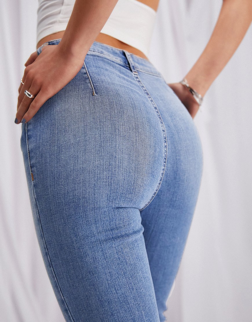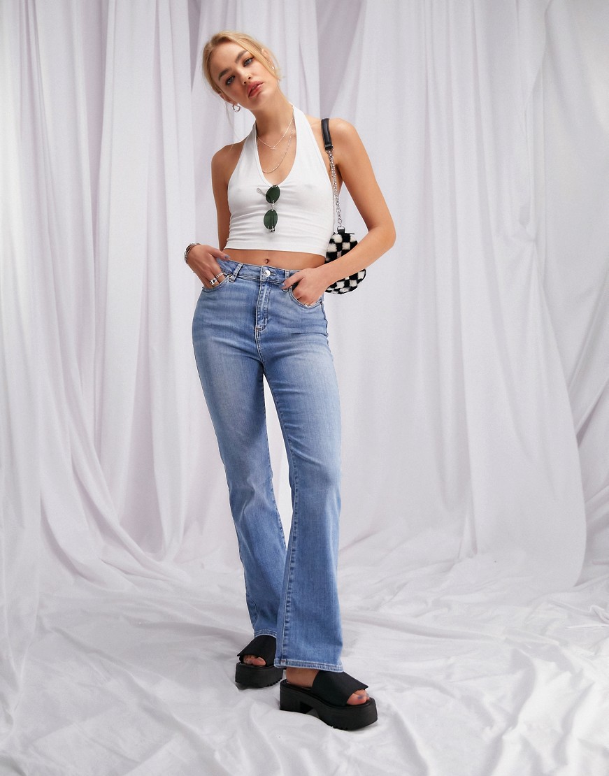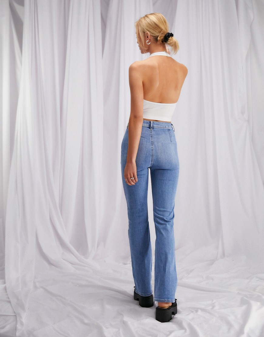 Jasne jeansy flare i podwyższonym stanem W28 L30