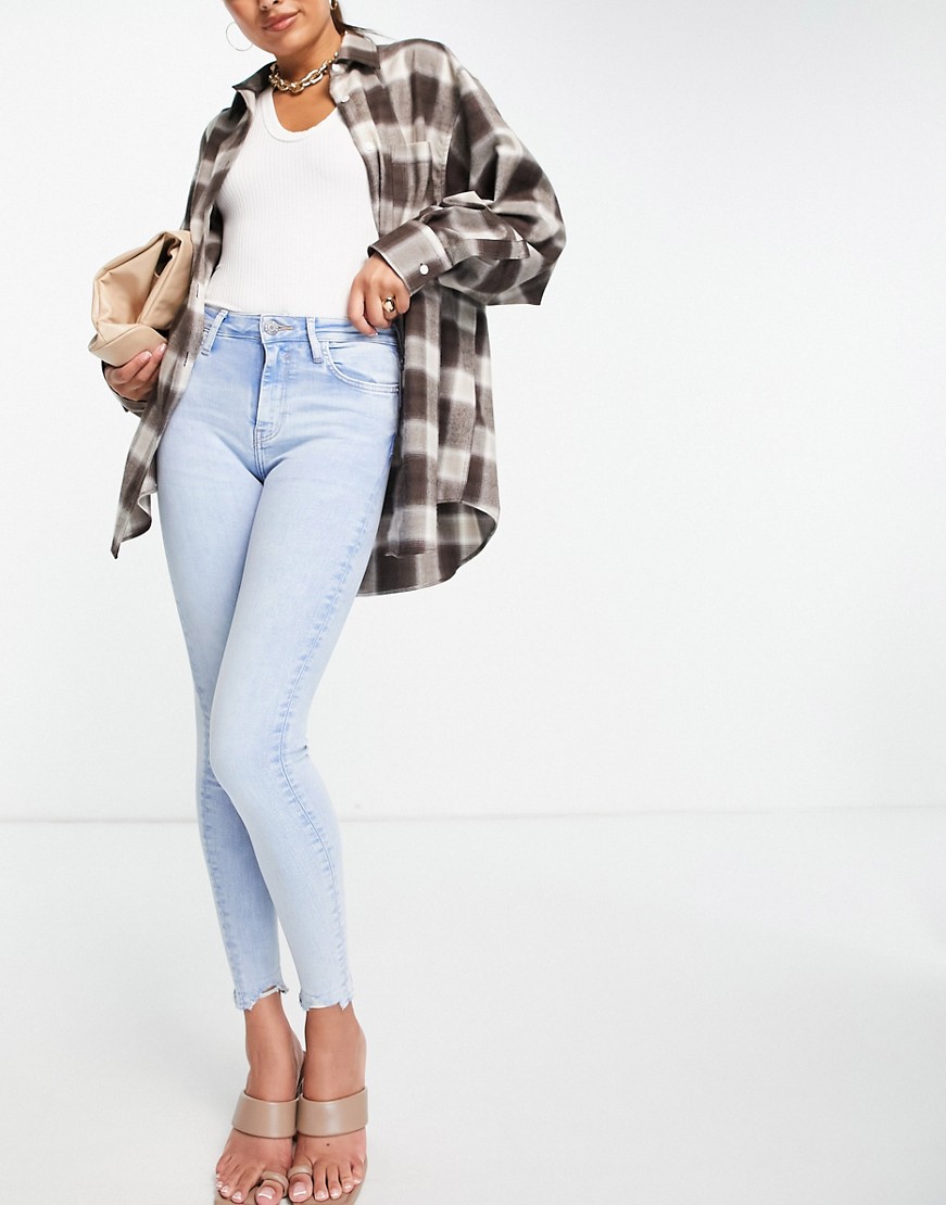 Jasne niebieskie jeansy skinny z podwyższonym stanem efekt sprania 38