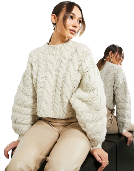Jasnobeżowy gruby sweter o splocie warkoczowym S