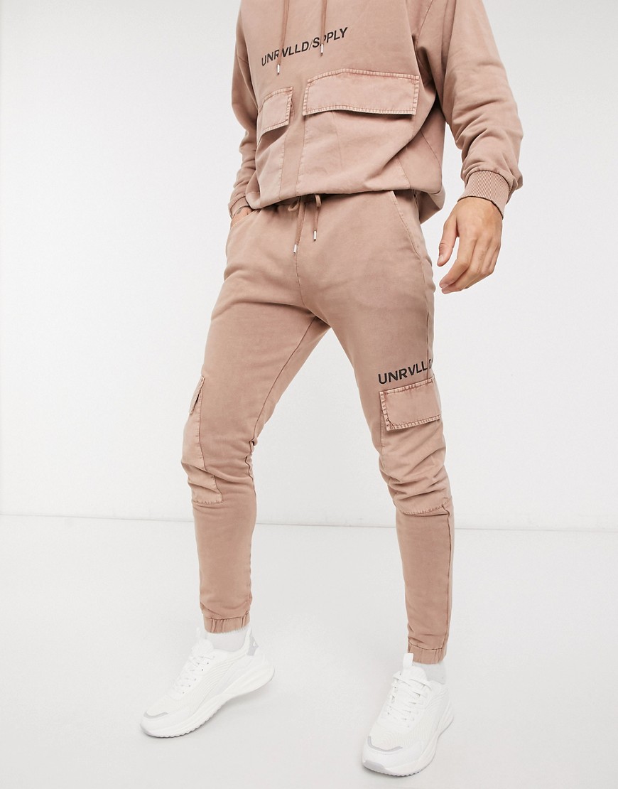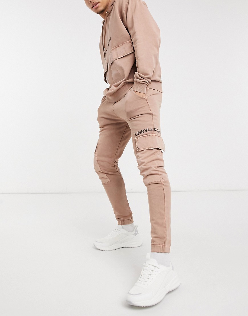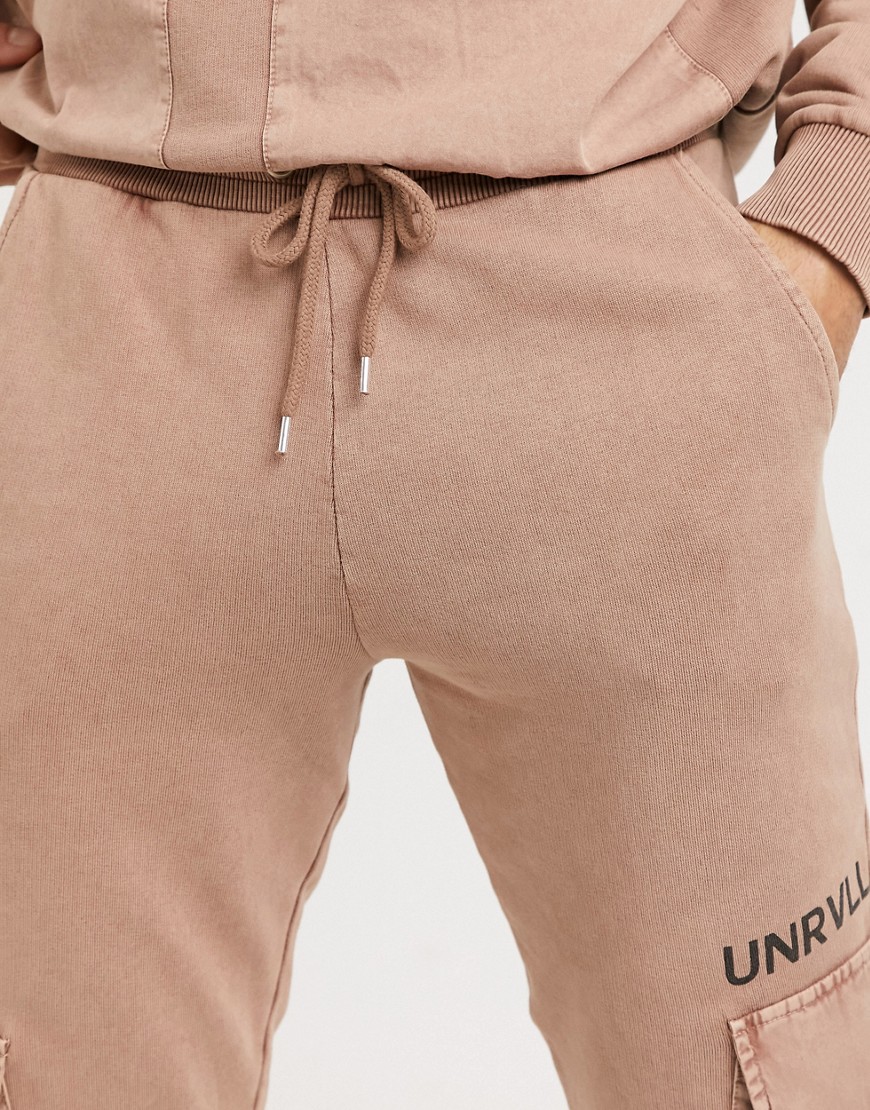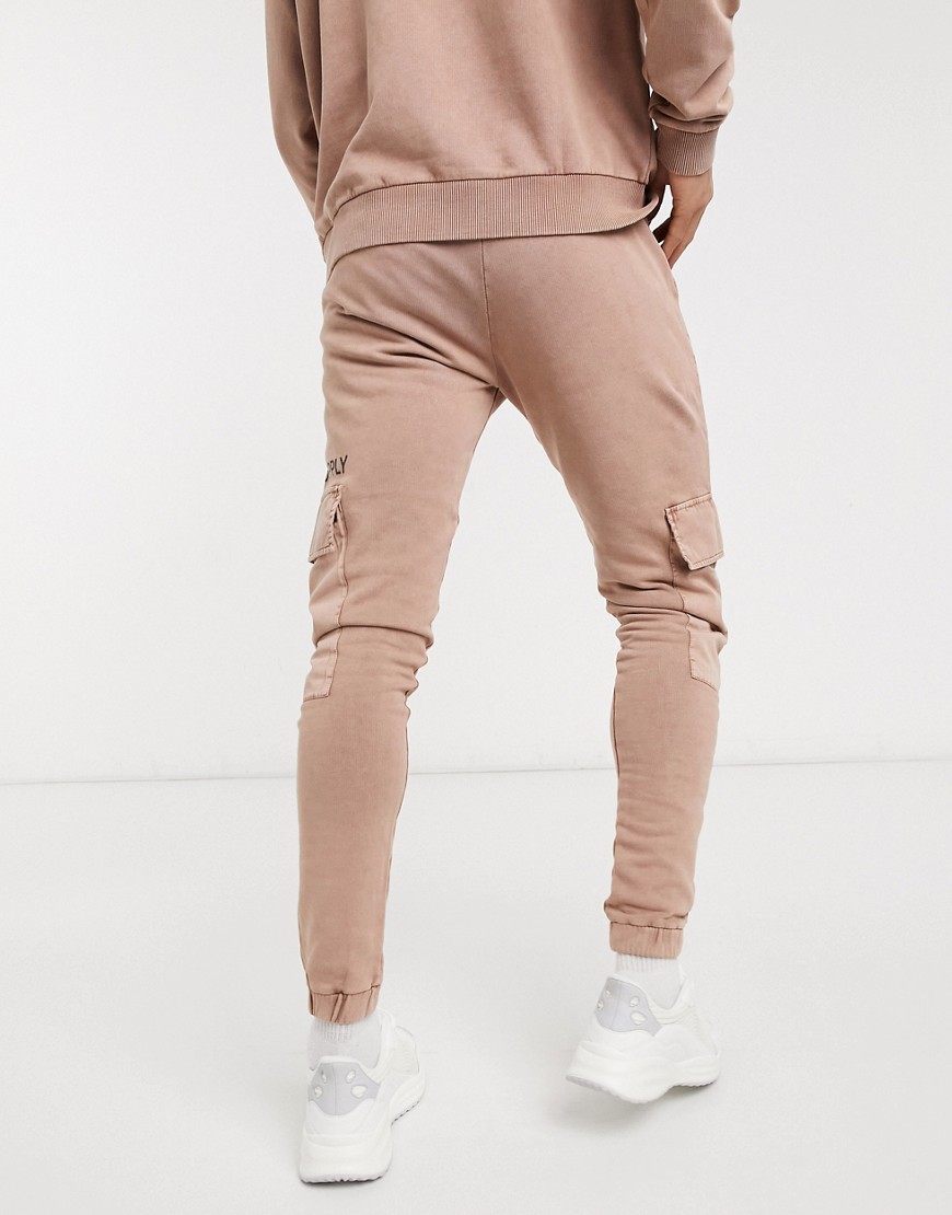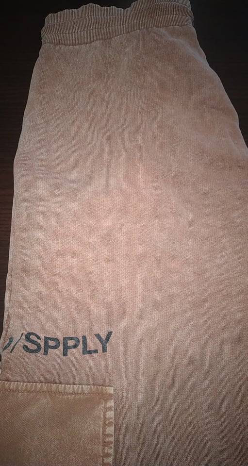 Jasnobrązowe joggersy oversize z logo i efektem sprania defekt M