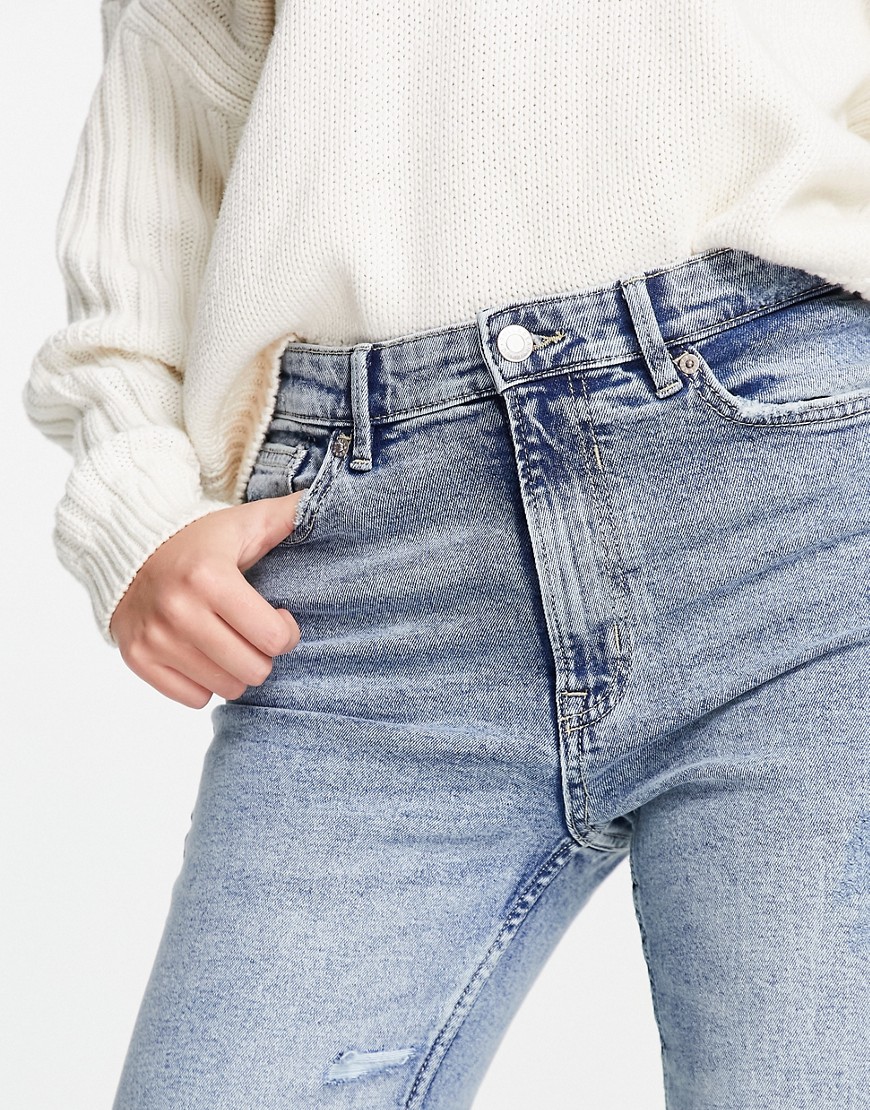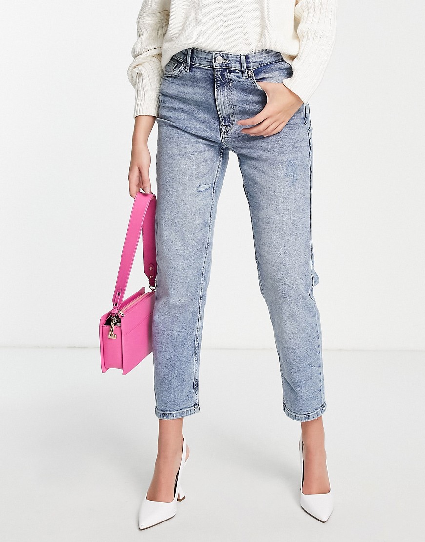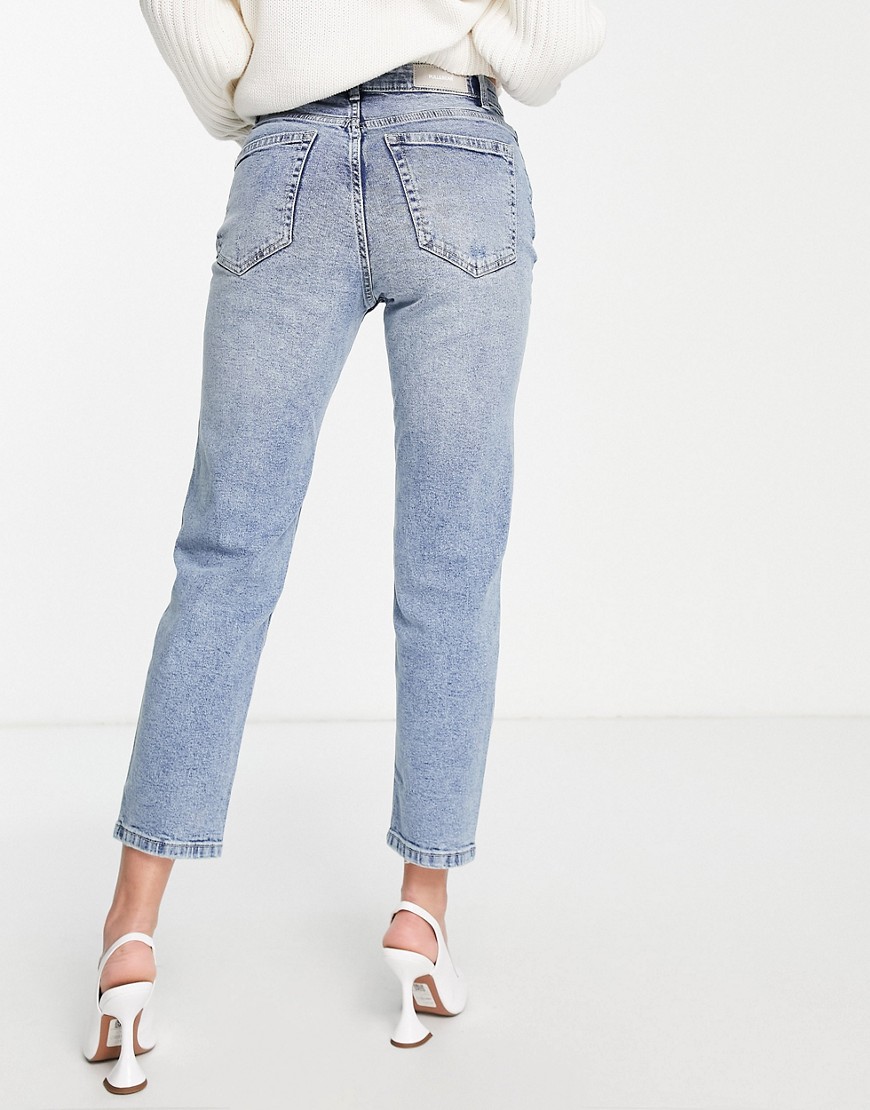 Jasnoniebieskie jeansy mom fit o dopasowanym kroju defekt 42