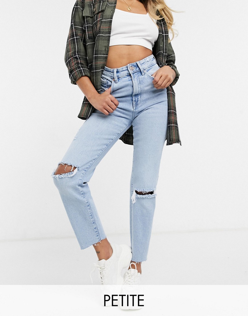 Jasnoniebieskie jeansy mom fit z bawełny organicznej ze stretchem i rozdarciami 38