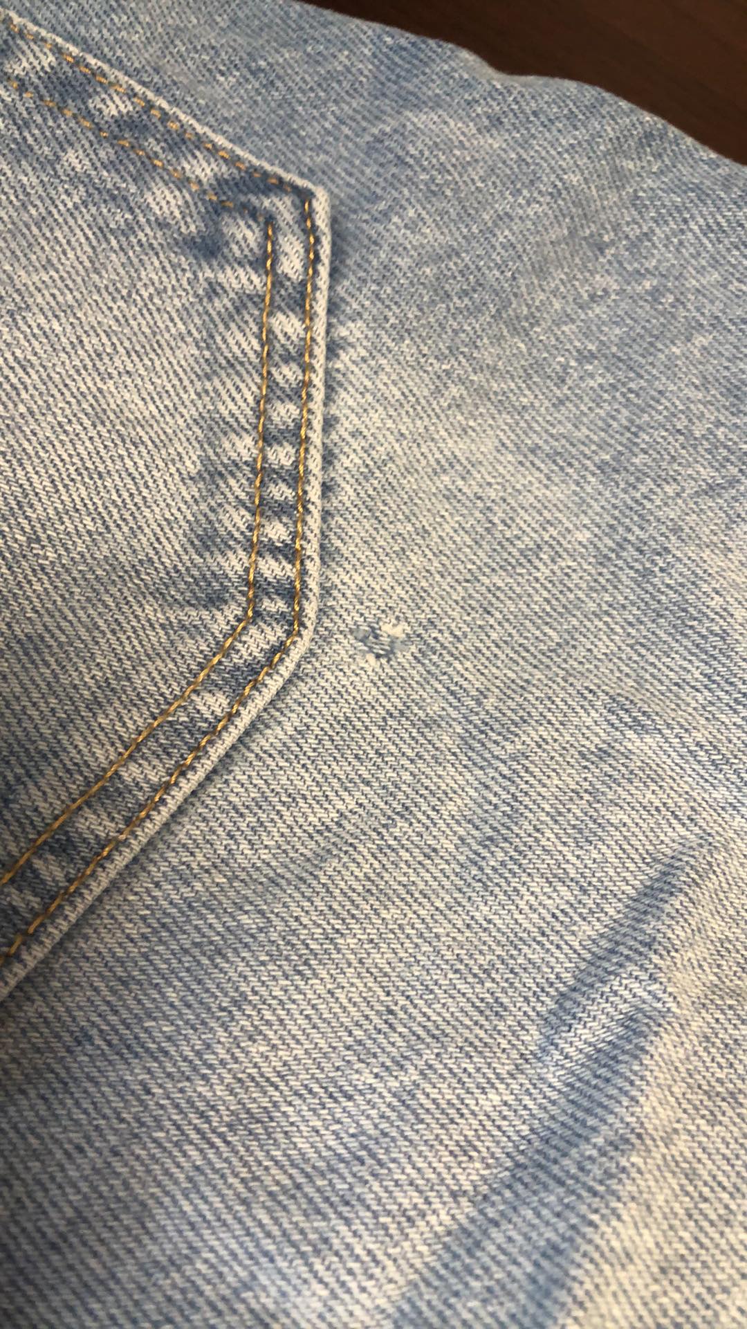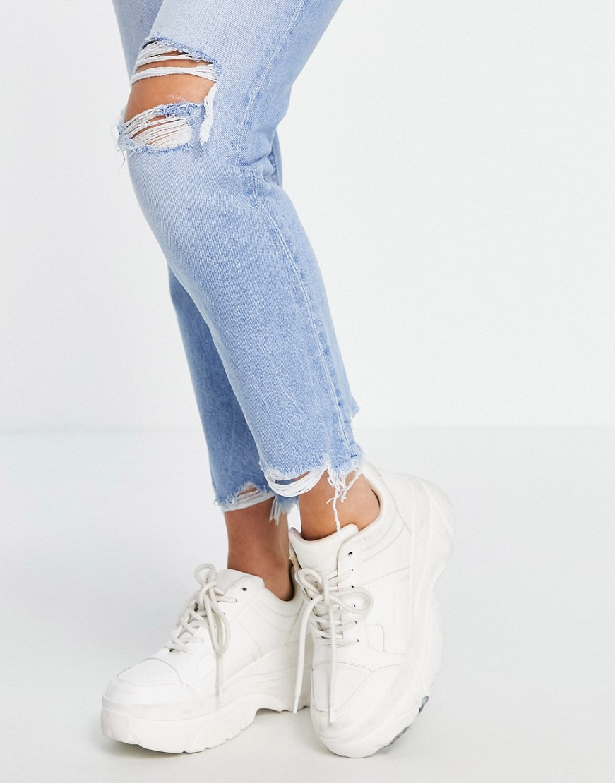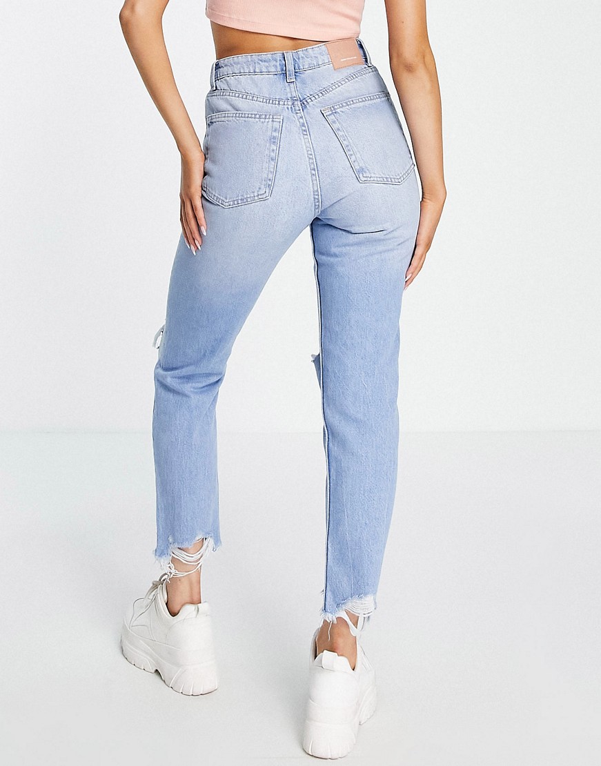 Jasnoniebieskie jeansy mom fit z przetarciami defekt 38