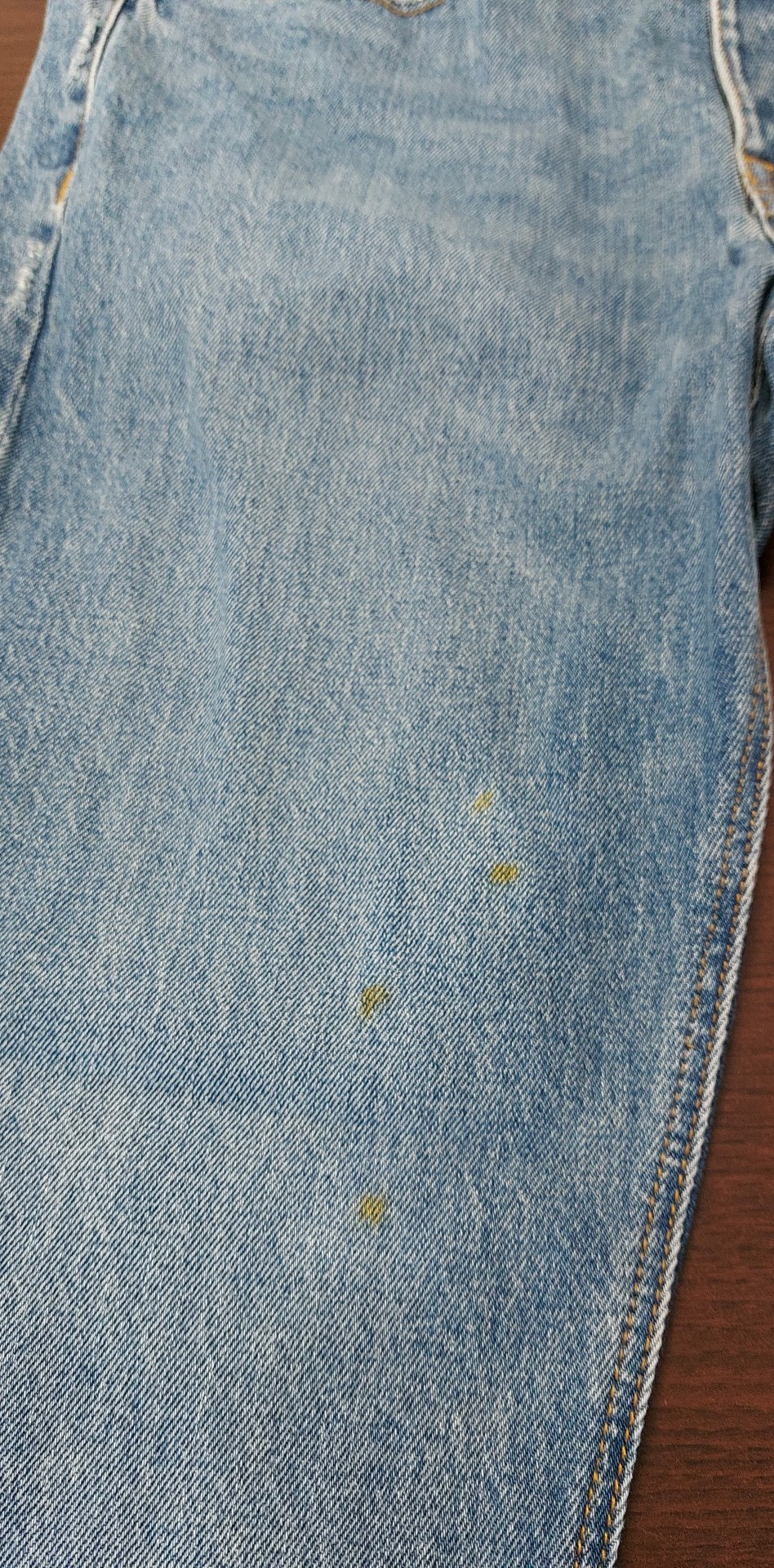 • Defekt zabrudzenie na nogawce z przodu, i z tyłu u dołu, zdjęcia w galerii produktu