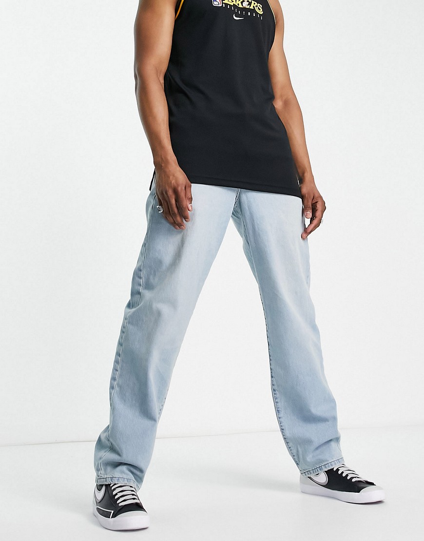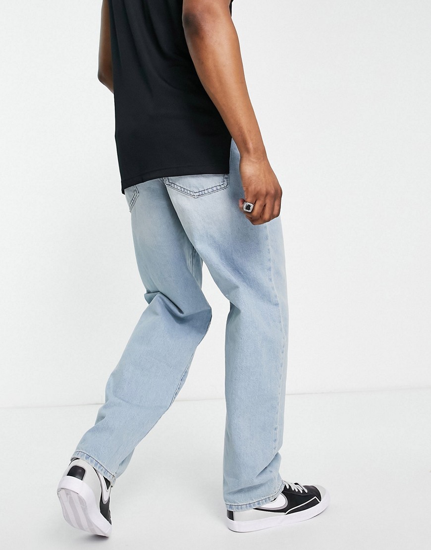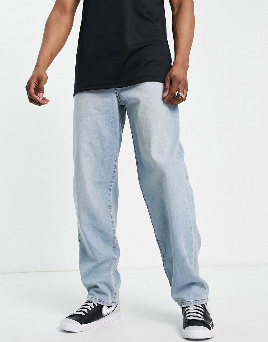 Jasnoniebieskie męskie jeansy o luźnym kroju defekt W34 L32