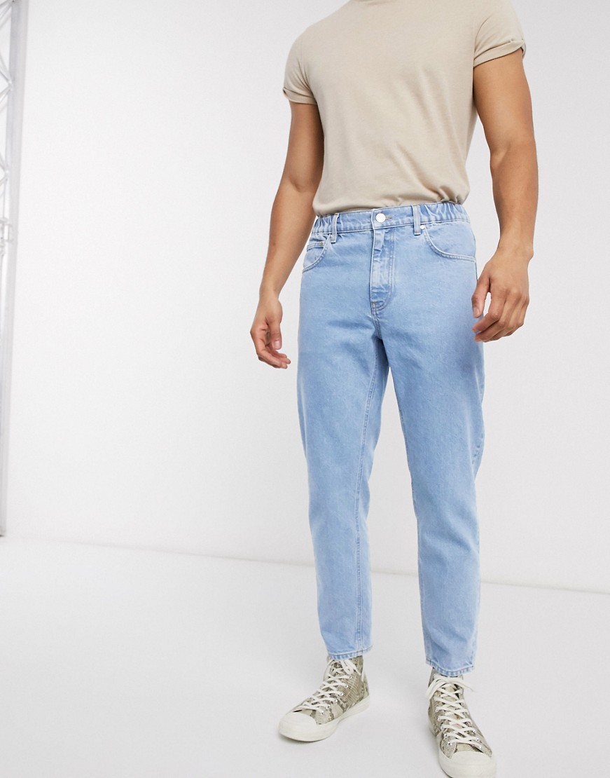 Jasnoniebieskie męskie klasyczne jeansy z elastycznym paskiem w talii defekt W34 L32