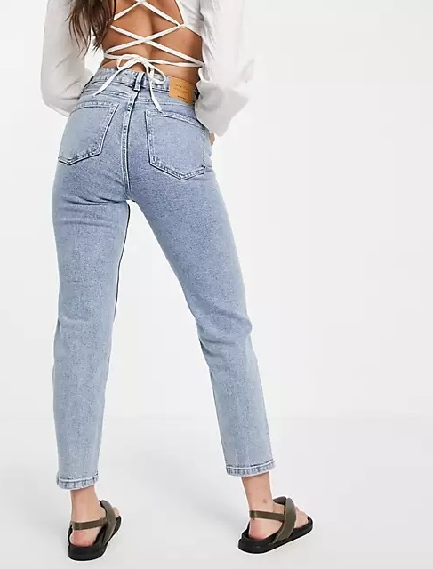 Jasnoniebieskie obcisłe jeansy mom fit 42