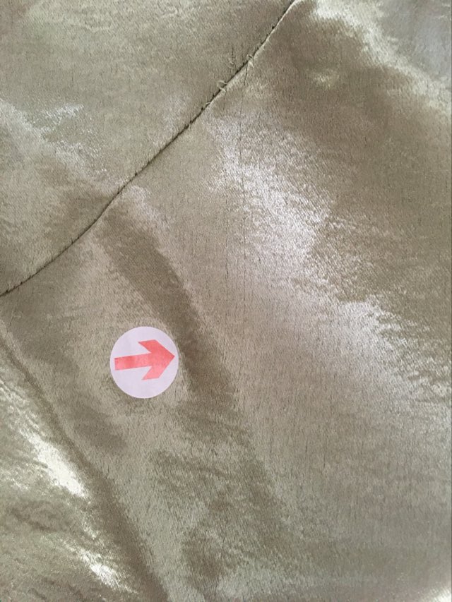 - Defekt: delikatne zaciągniecia materiału w kilku miejscach (dół i tył sukienki) praktycznie niewidoczne w tego typu tkaninie (zdjęcia).