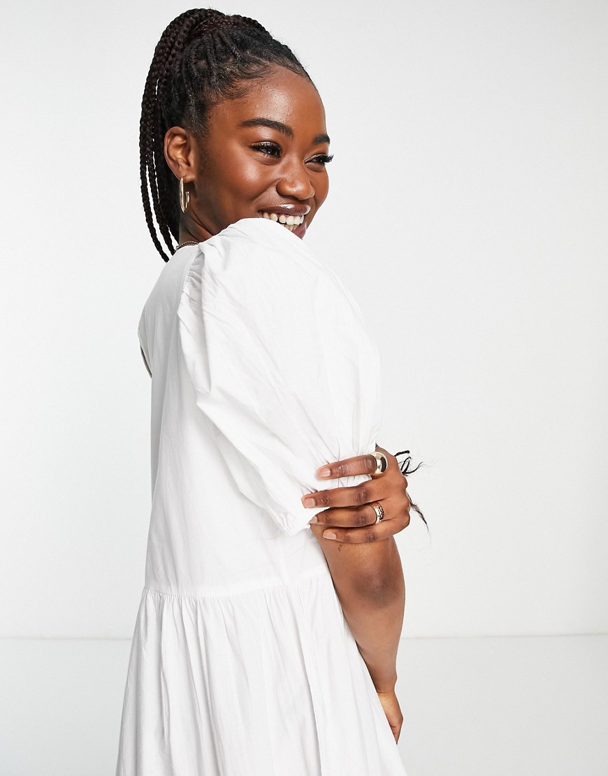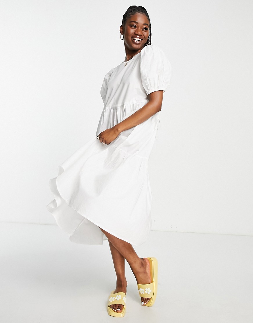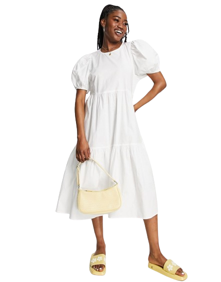 JDY biała warstwowa sukienka midi o luźnym kroju z bufkami 38