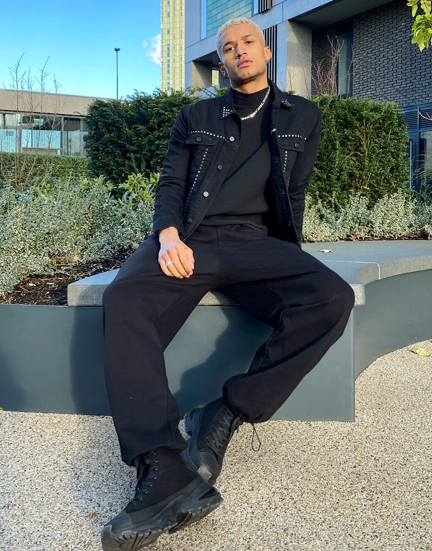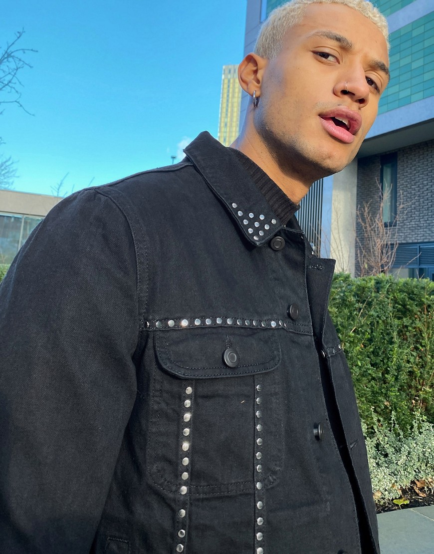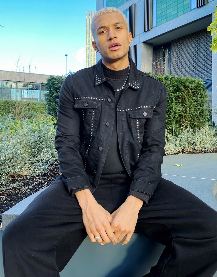 Jeansowa kuetka męska czarna z ćwiekami 2XL