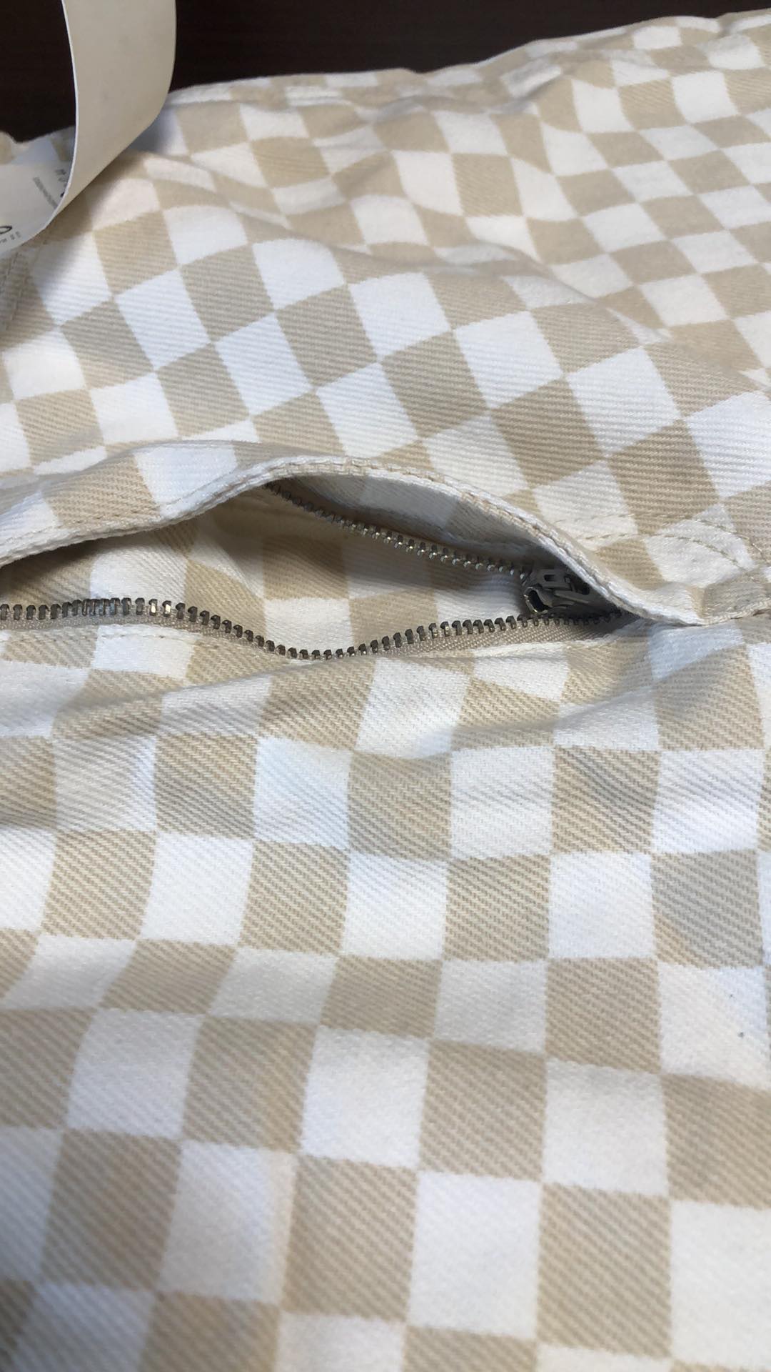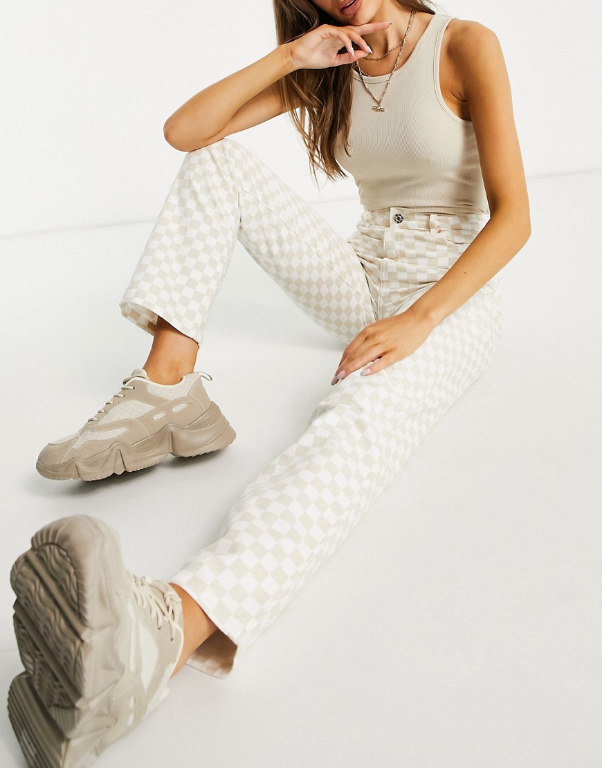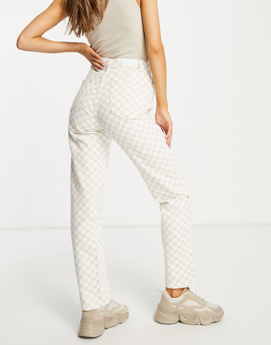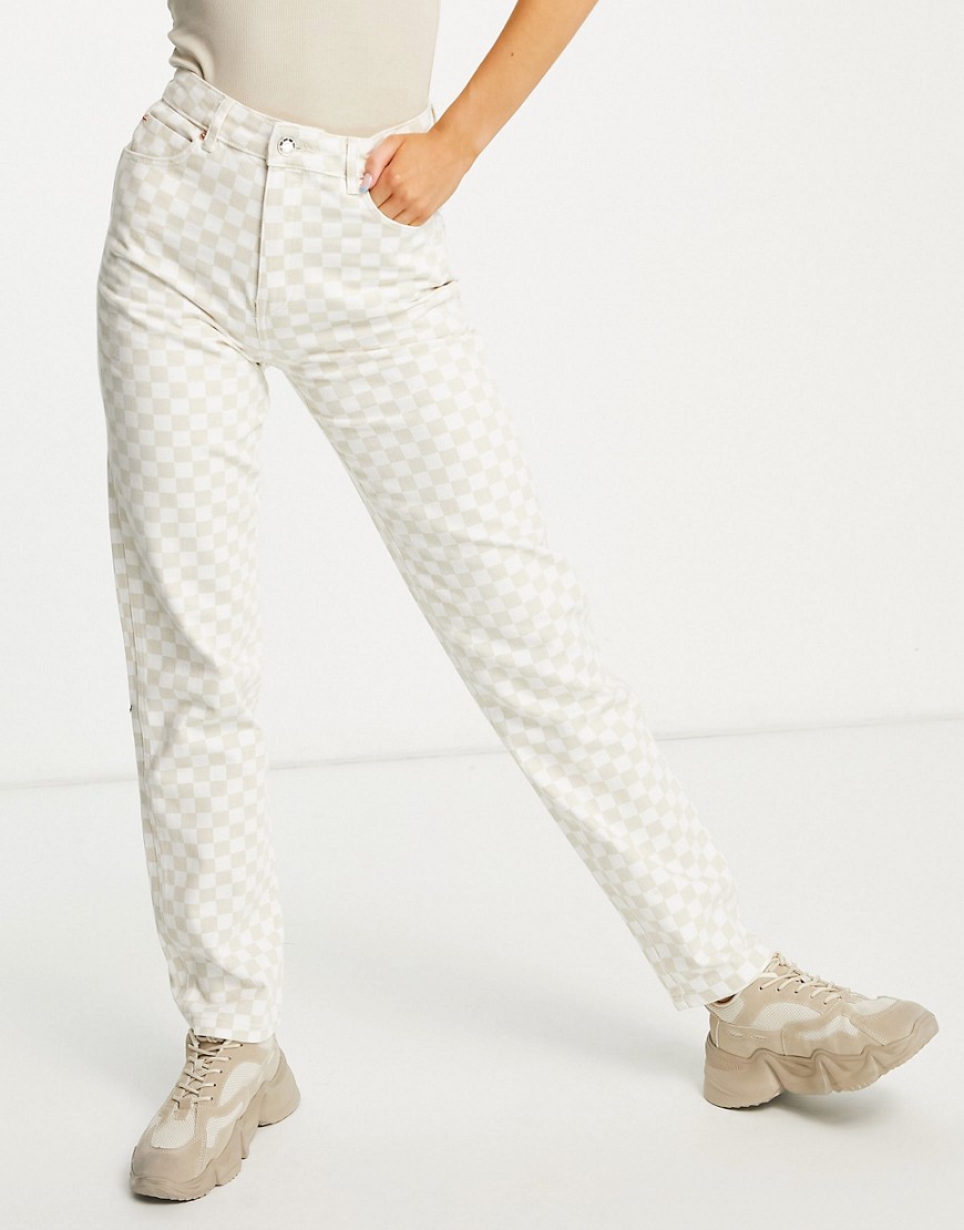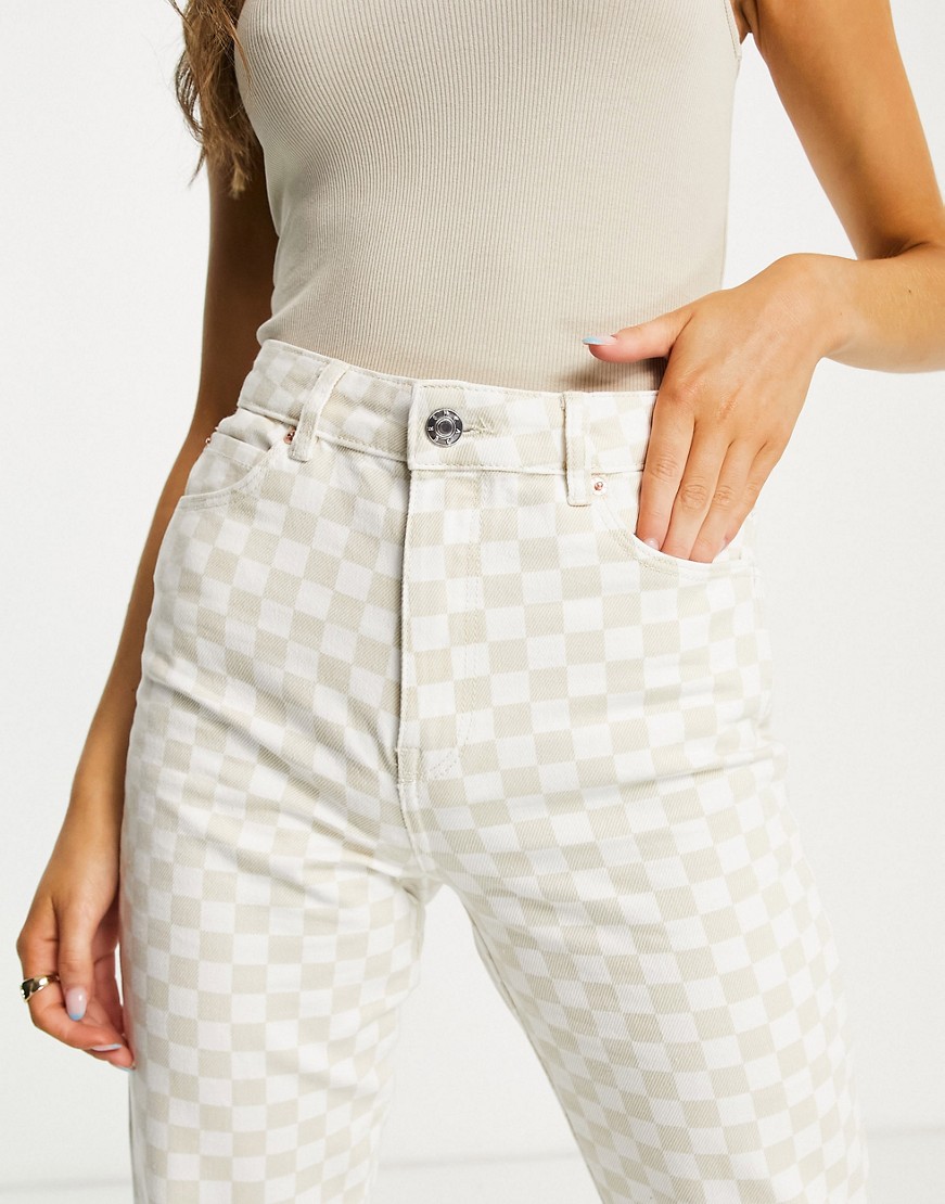 Jeansy z nadrukiem szachownicy w kolorze ecru defekt 38