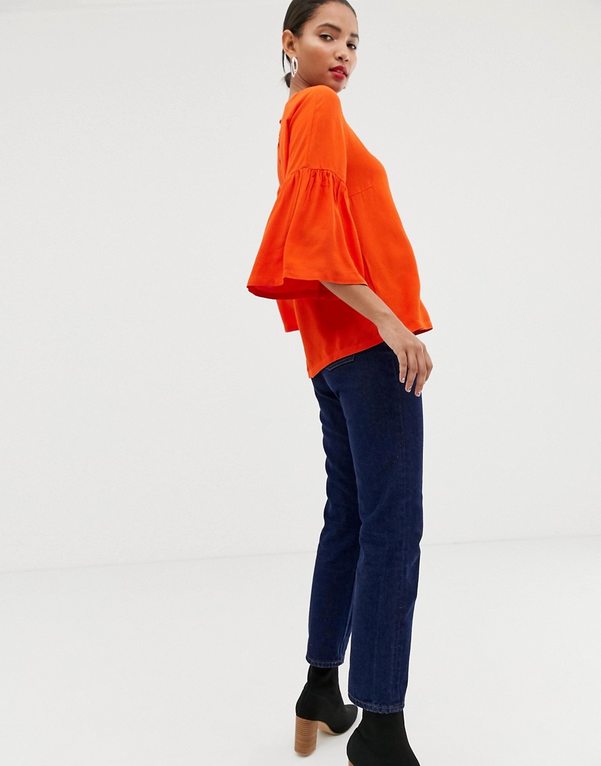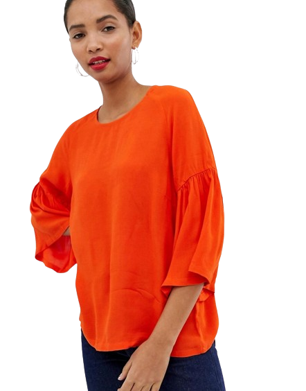 Just Female pomarańczowa bluzka z rękawem 3/4 M