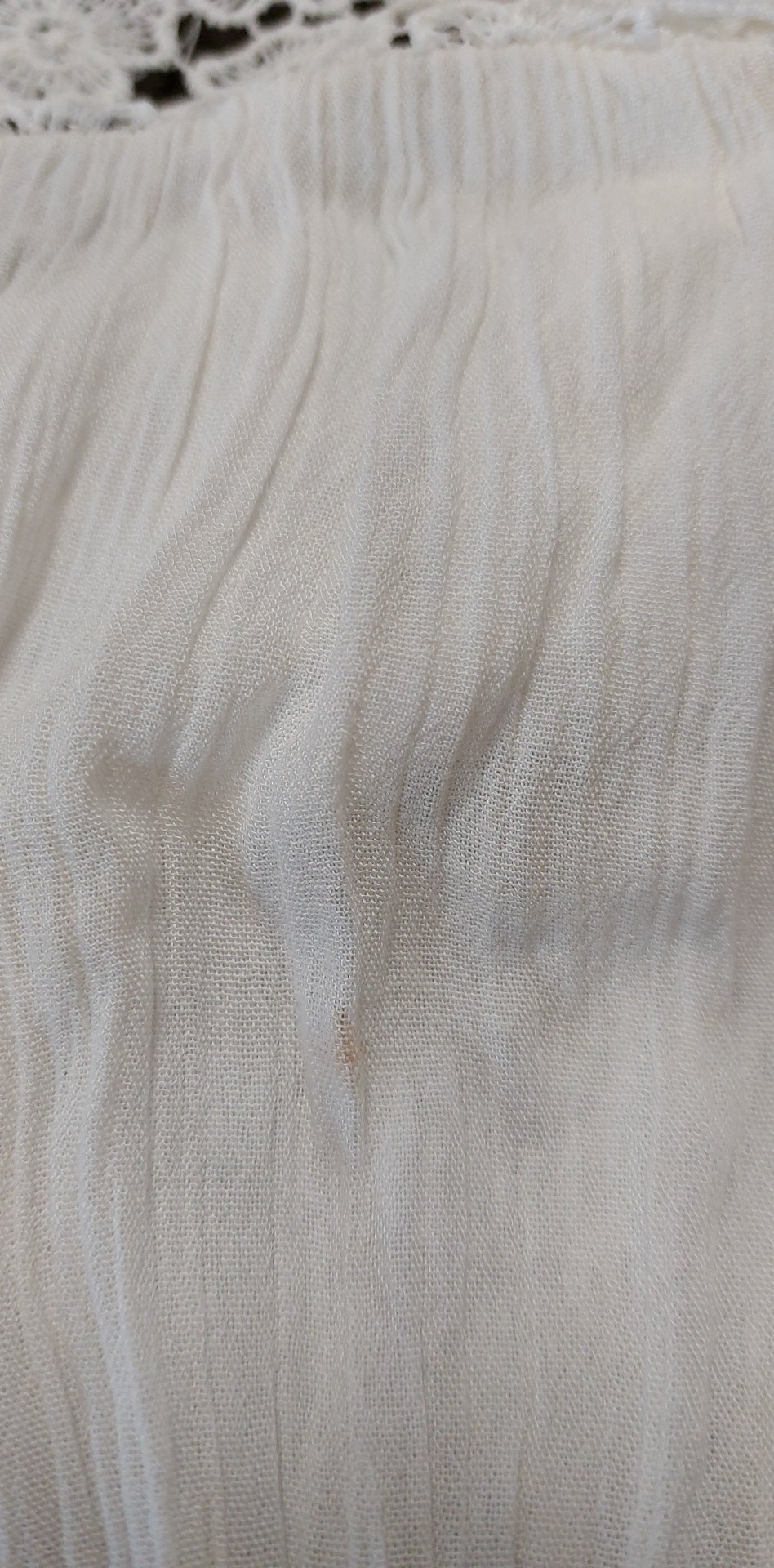 - Defekt: zabrudzenie z tyłu na materiale nad koronką, niewielkie