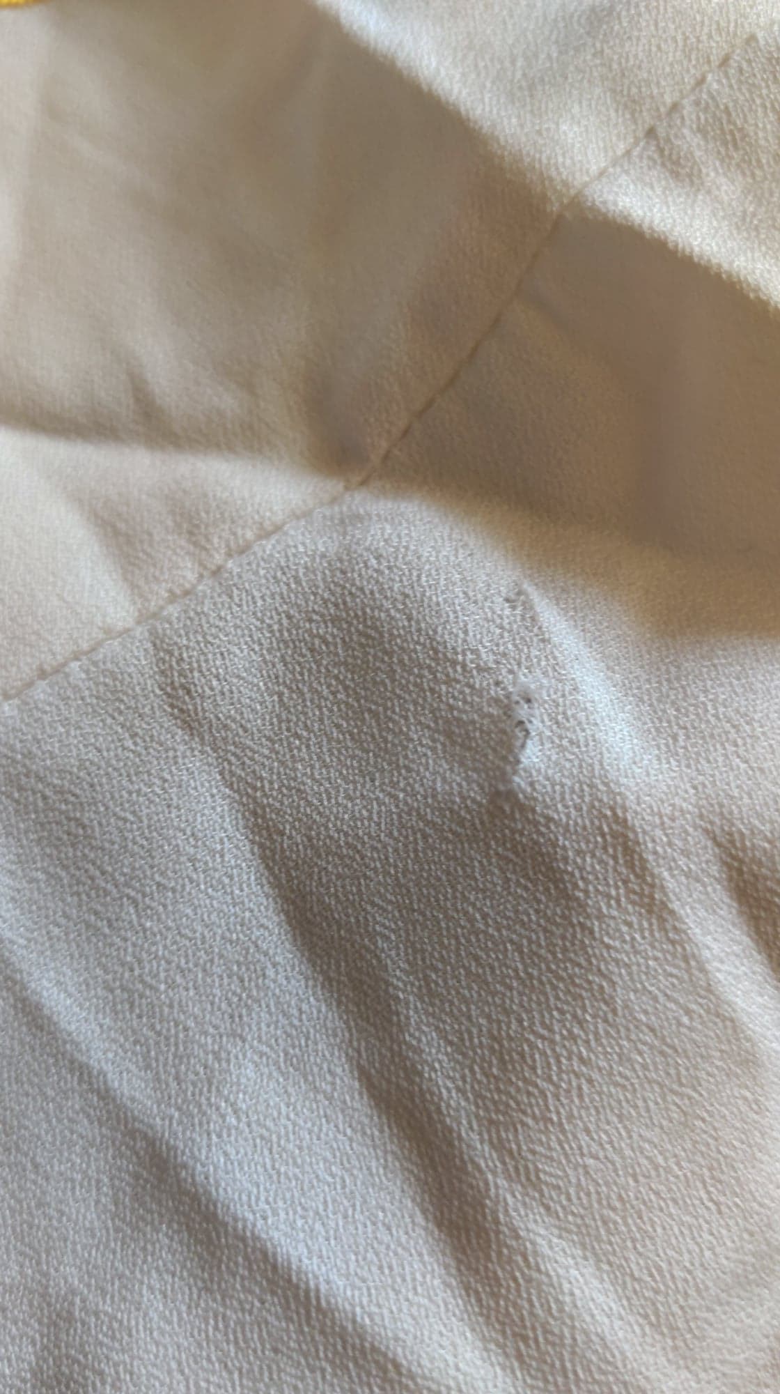 - Defekt: delikatne przecięcie na falbanie przy rękawie. Bardzo słabo widoczne (zdjęcie)