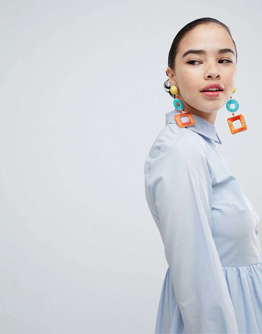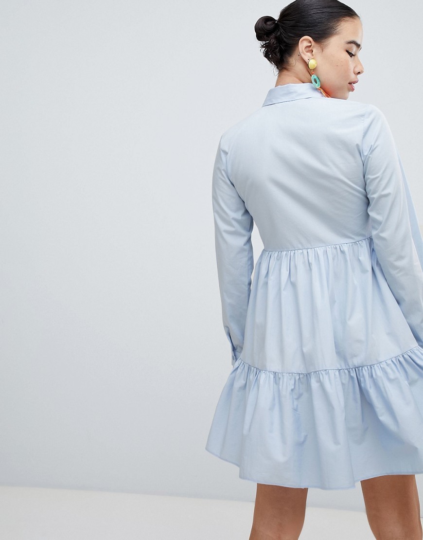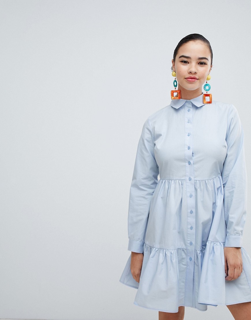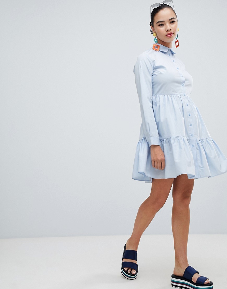 Niebieska koszulowa Sukienka z falbaną XXS 32
