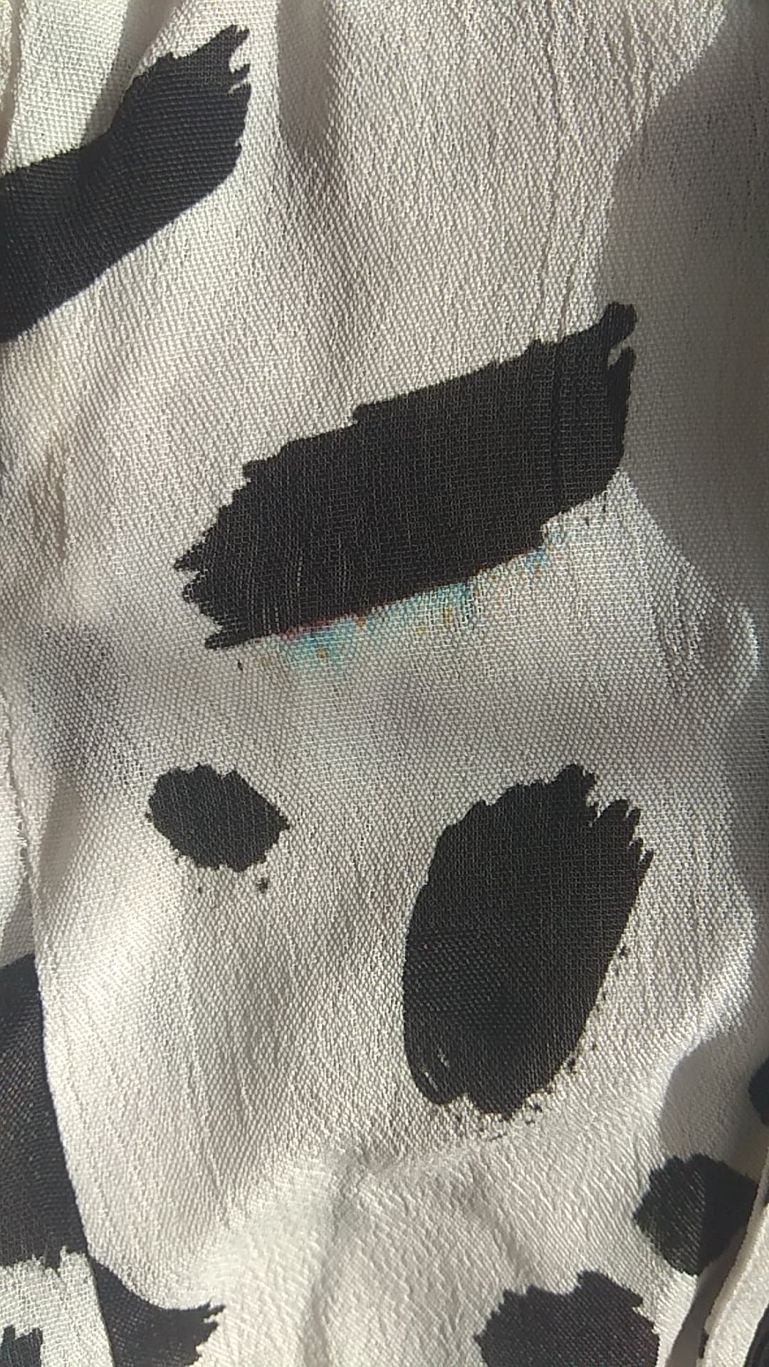 - Defekt: przebarwienie z przodu po lewej stronie, z tyłu na plecach(zdjęcie)