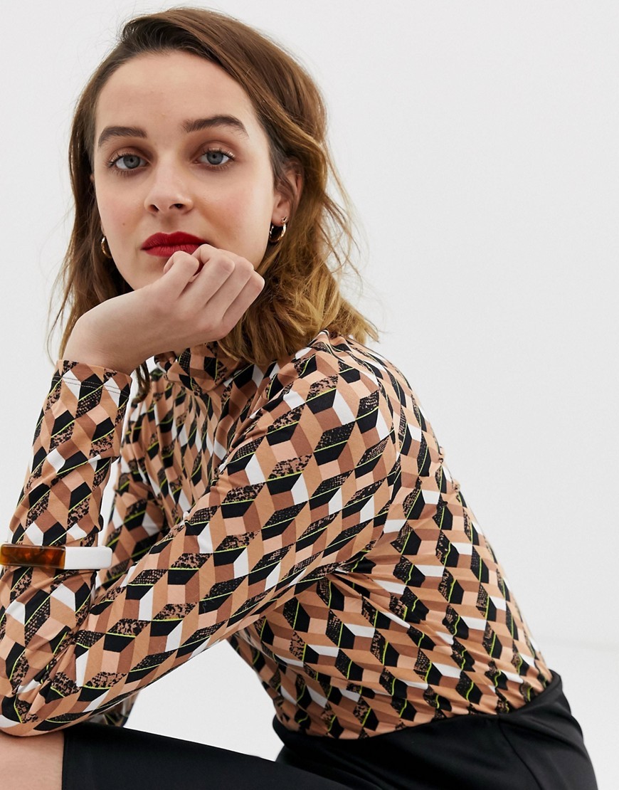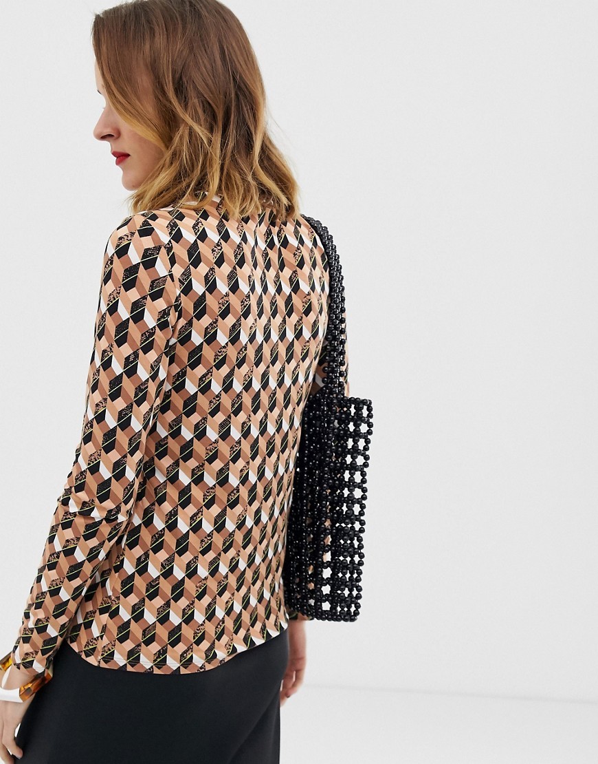 Bluzka geometryczny wzór wysoki dekolt XL 42