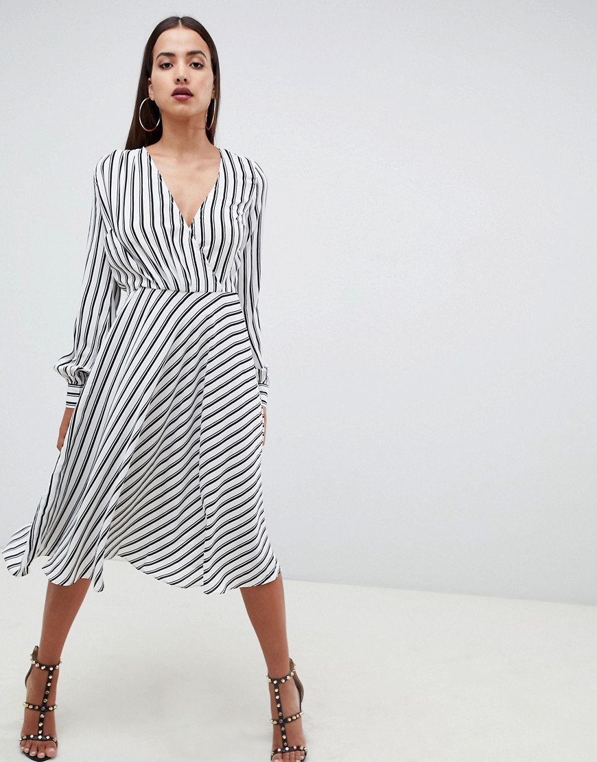 Biała Czarna Sukienka midi dekolt v w paski L 40