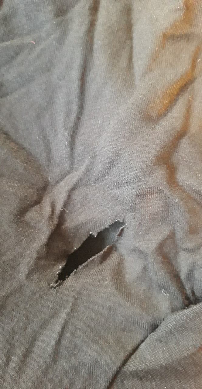 - Defekt: rozcięte na plecach nożyczkami (zdjęcie)