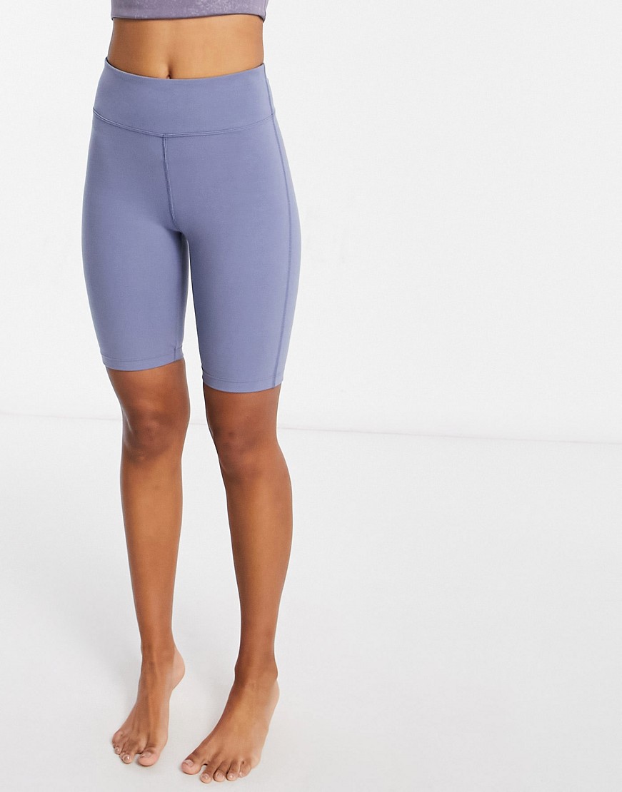Klasyczne dopasowane krótkie legginsy z bawełny niebieskie defekt 36