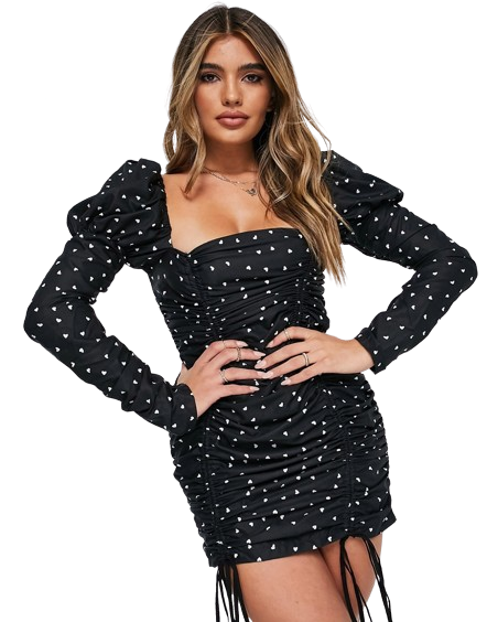 Koco & K czarna sukienka mini w serduszka bufki kwadratowy dekolt 42