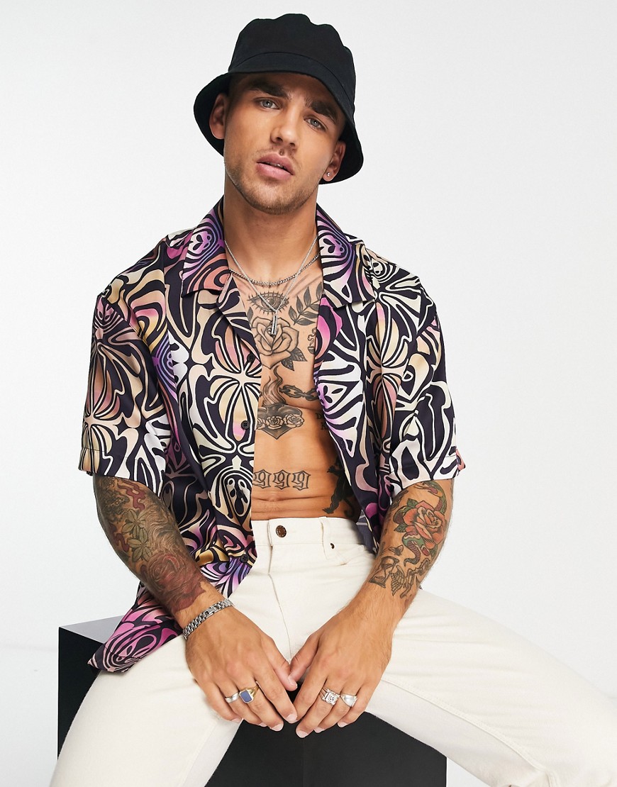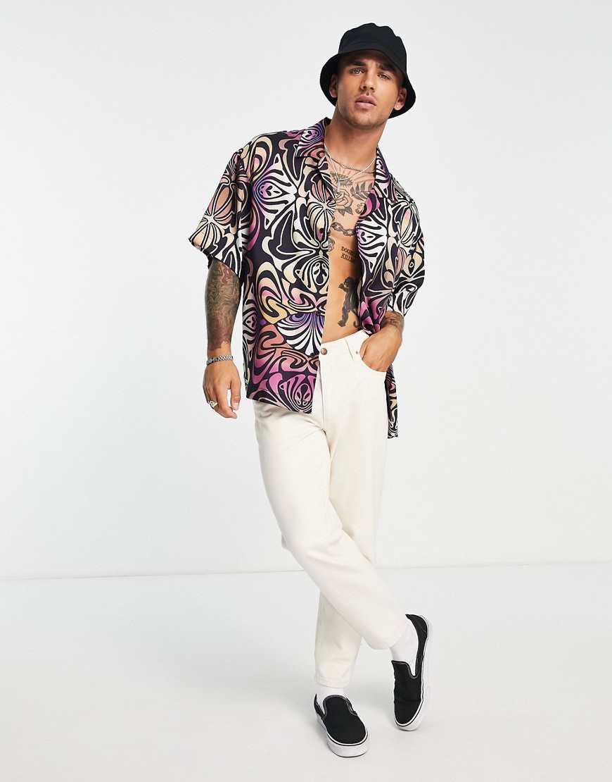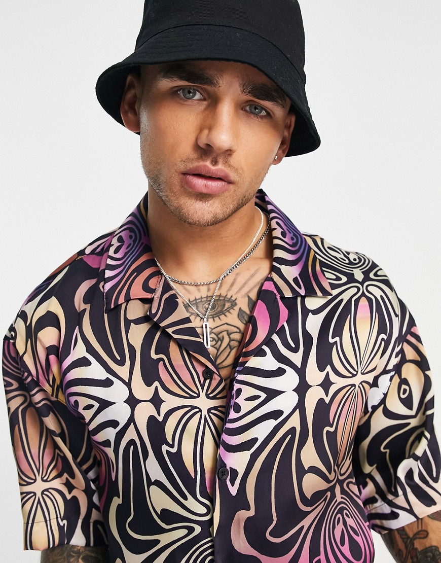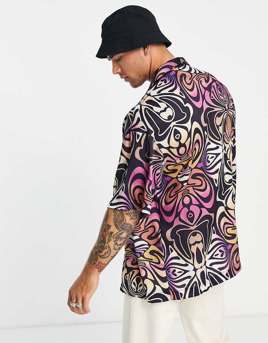 Kolorowa koszula z krótkimi rękawami w falisty wzór defekt M