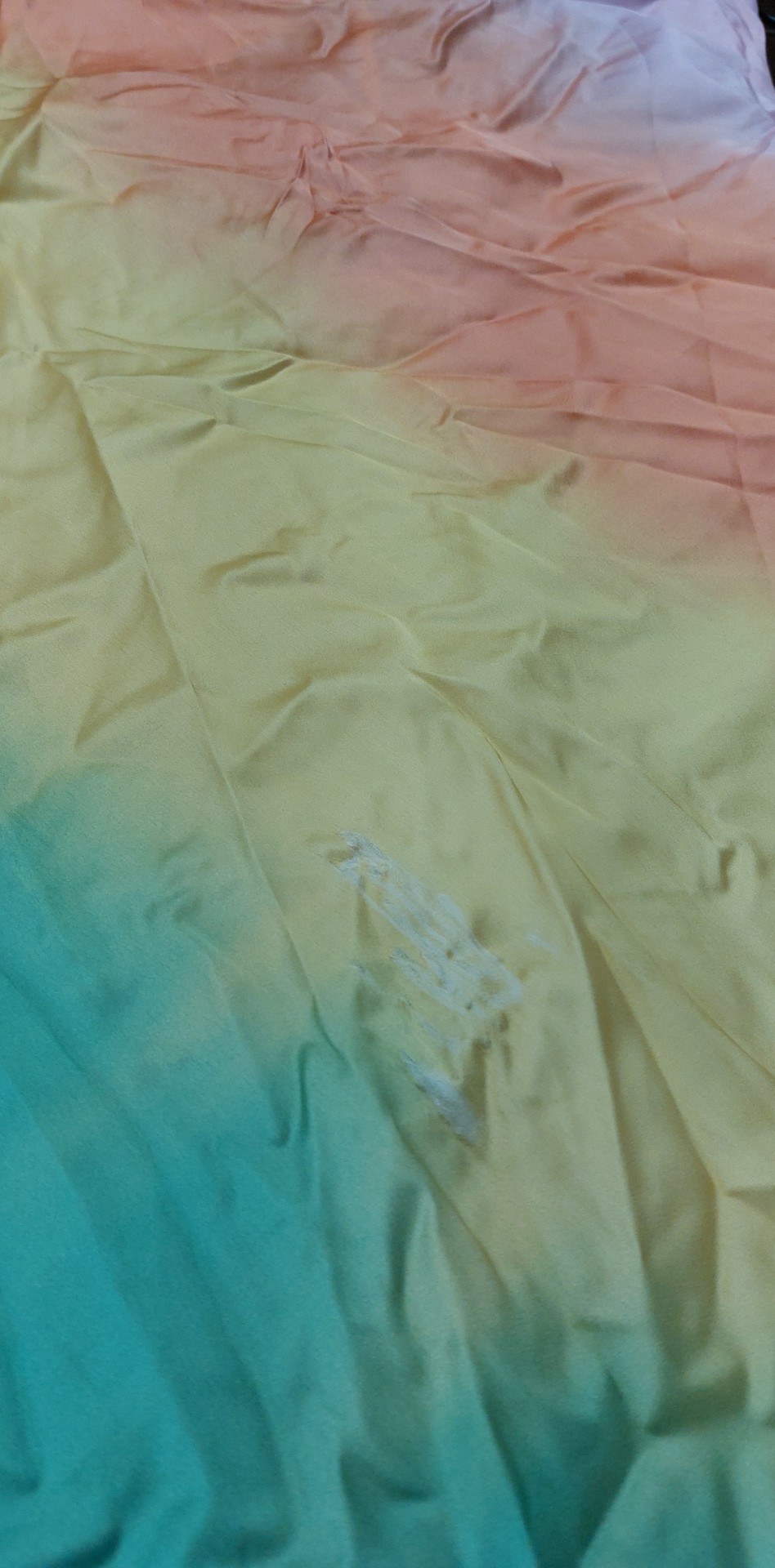 - Defekt : przetarty materiał z przodu oraz z tyłu sukienki, dolna partia, zdjęcie w galerii produktu