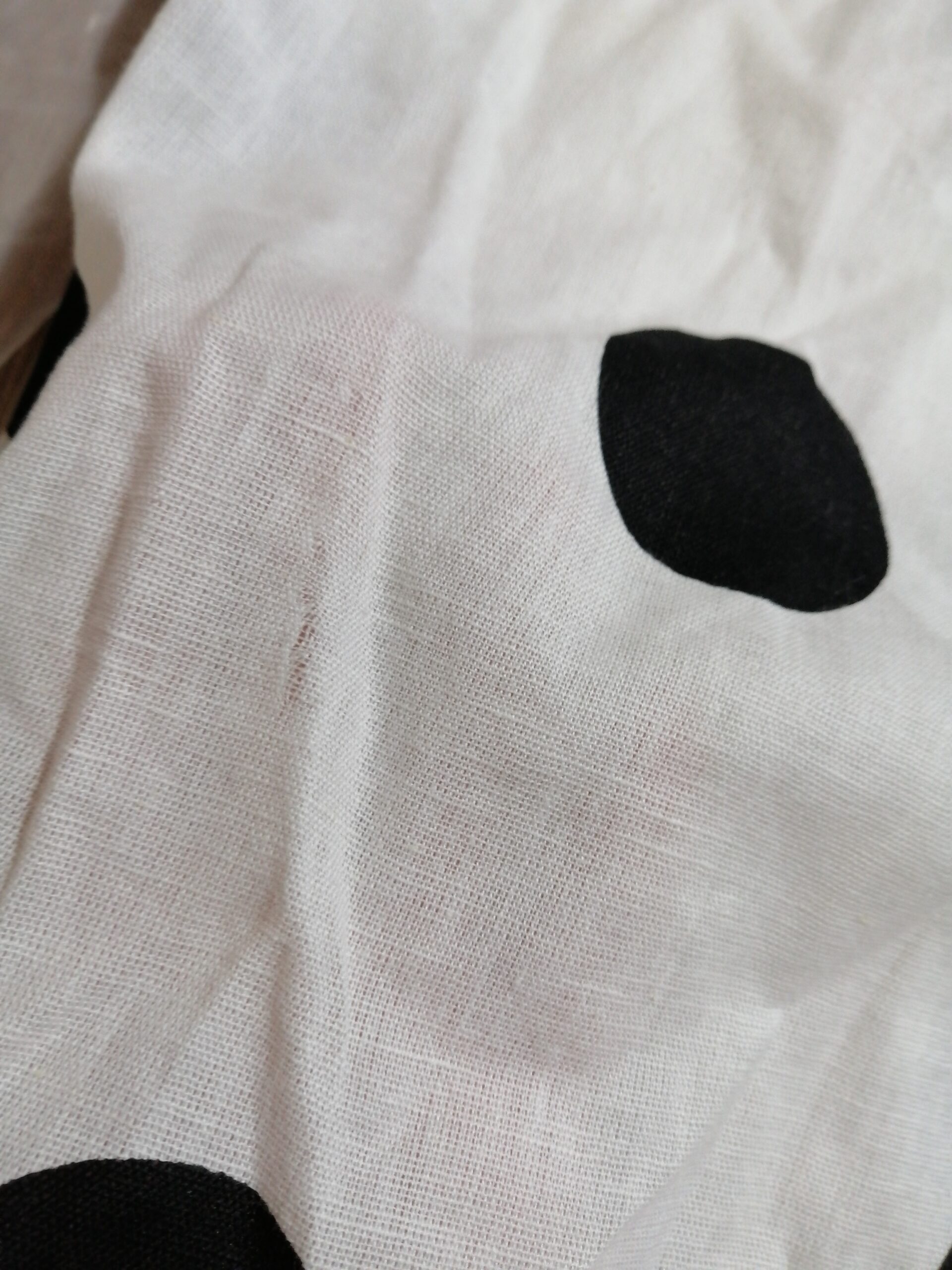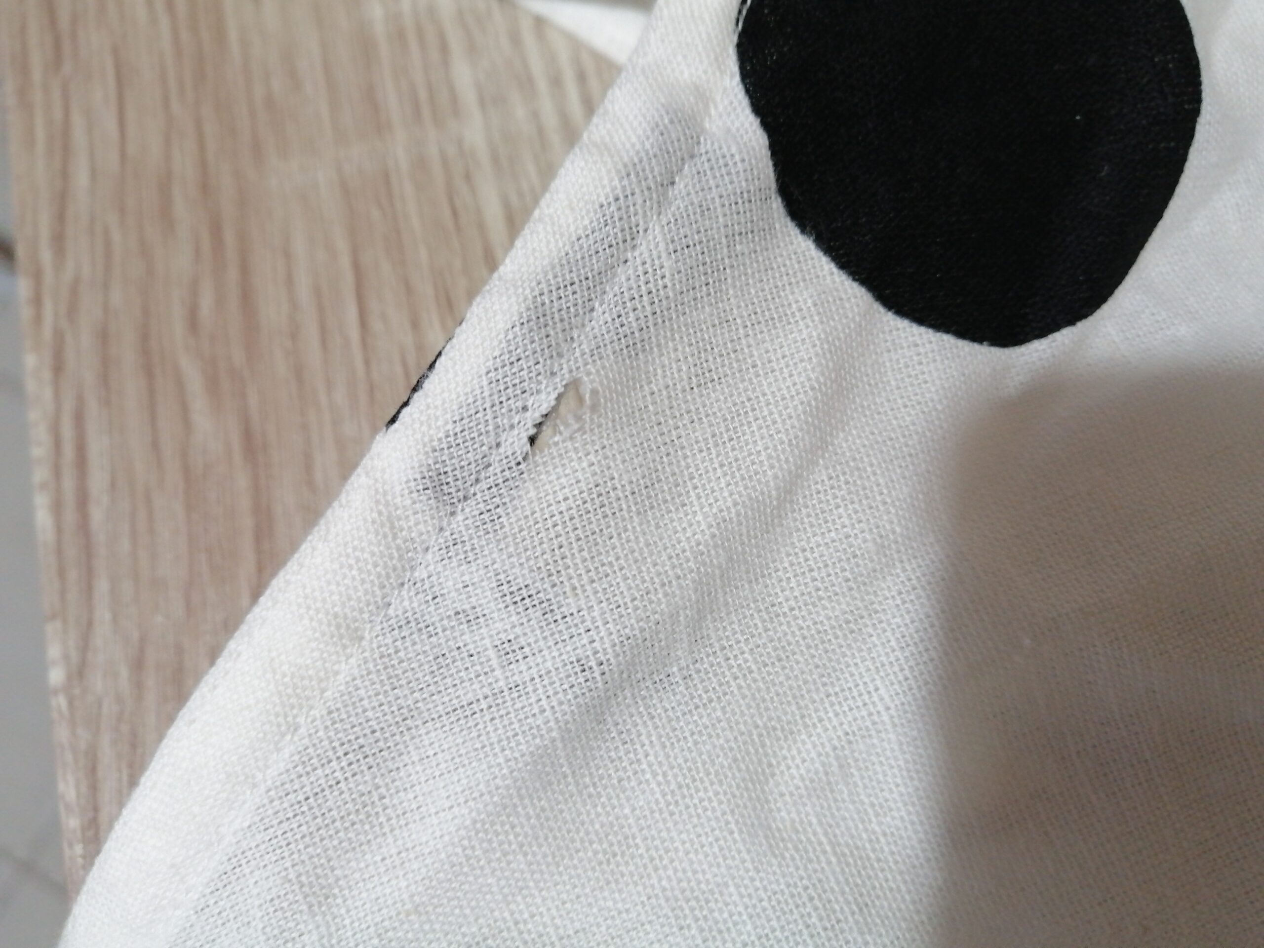 - defekt: dziurka po zerwaniu metki; zaciągnięcie materiału (zdjęcia)