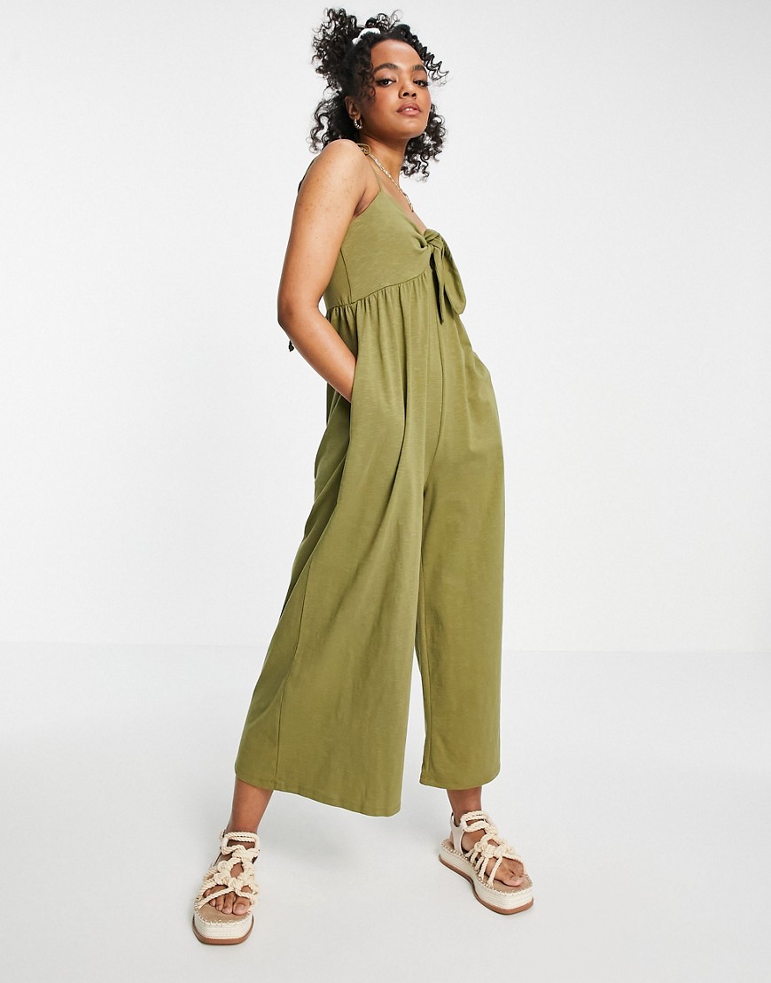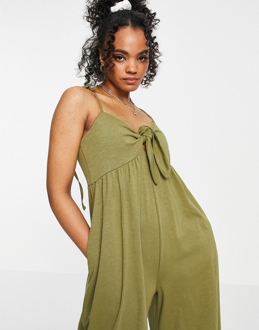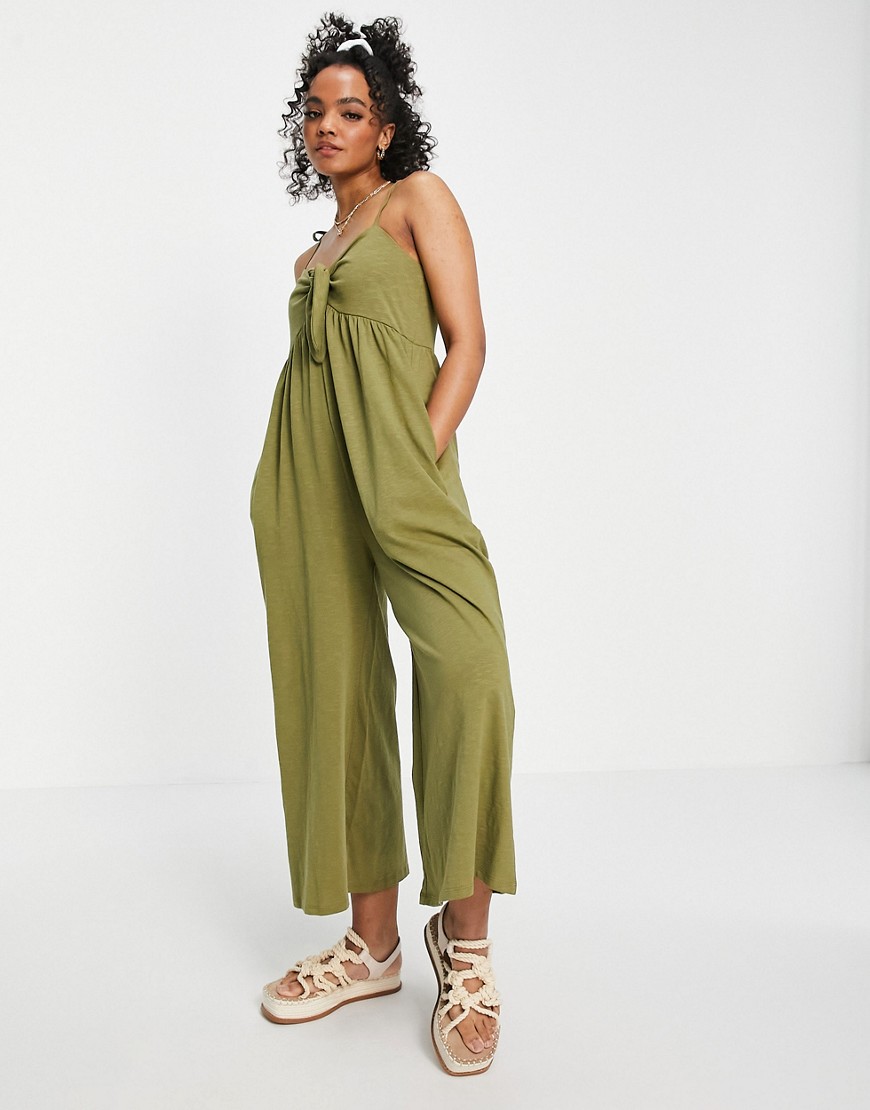 Kombinezon w kolorze khaki na ramiączkach z wiązaniem z przodu 44