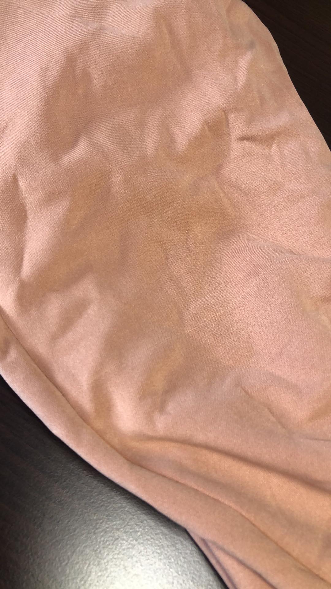 - Defekt: zaciągnięcie materiału na nogawce tył kolano