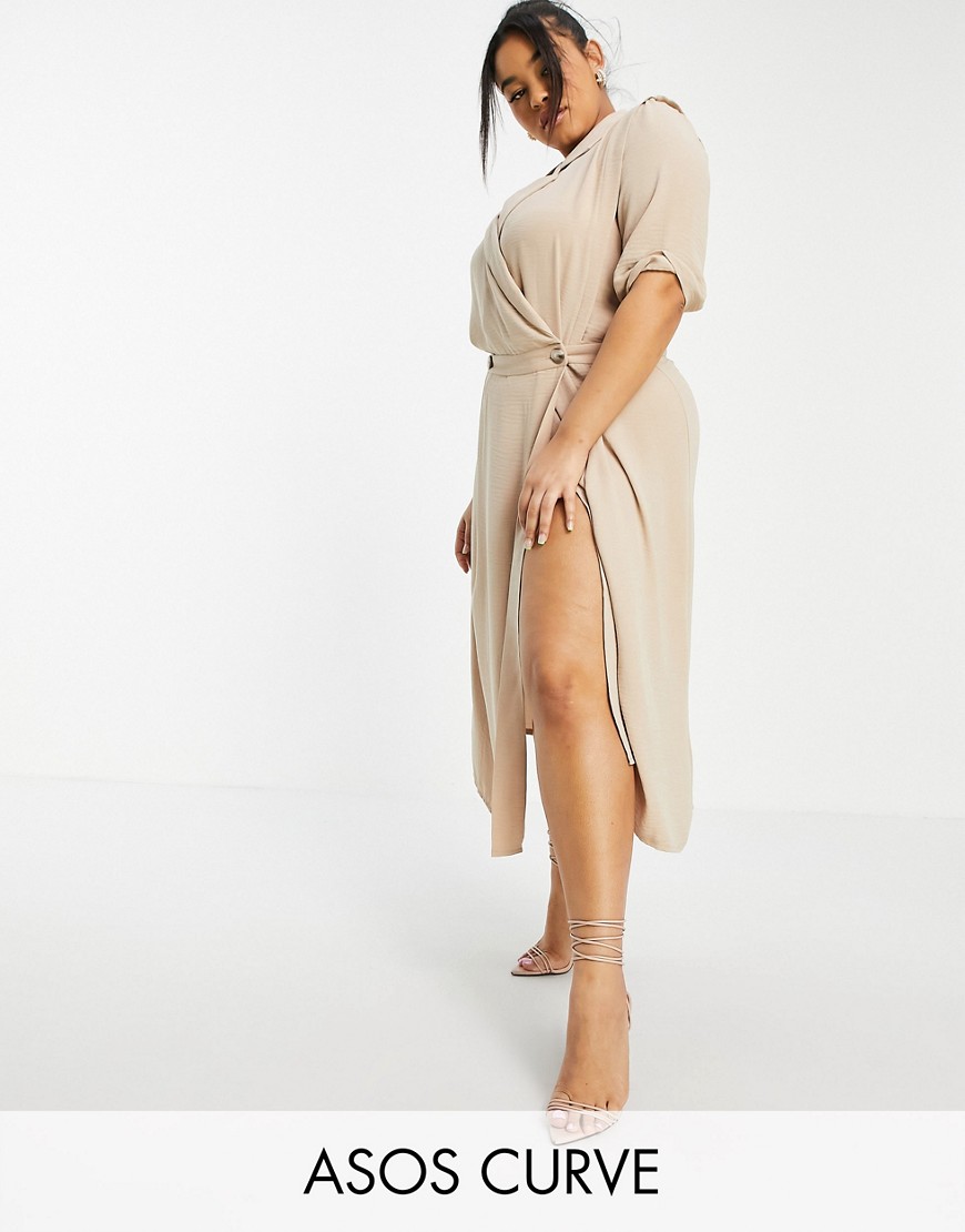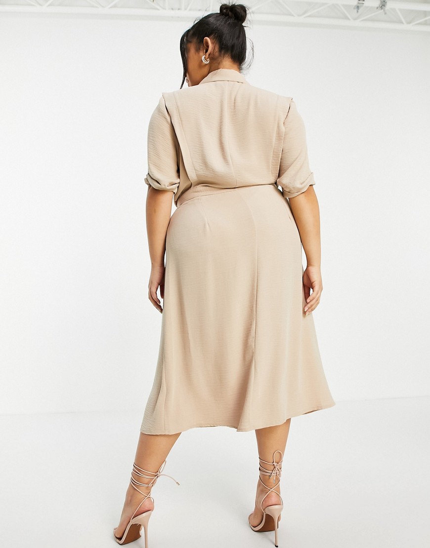Kopertowa sukienka midi beżowa plus size 52