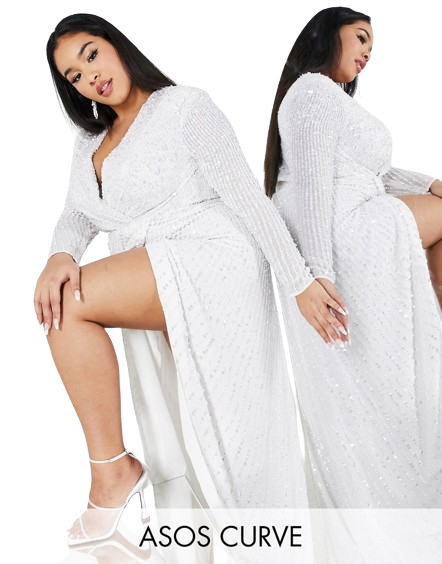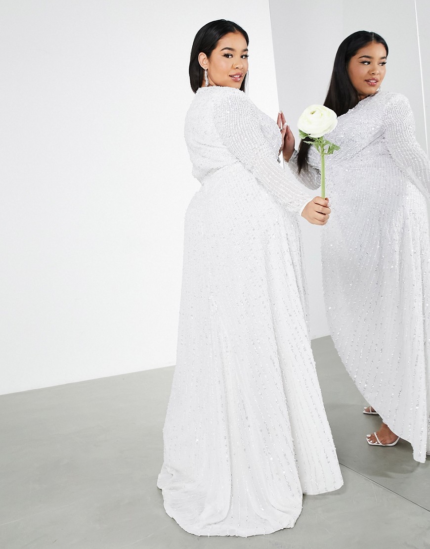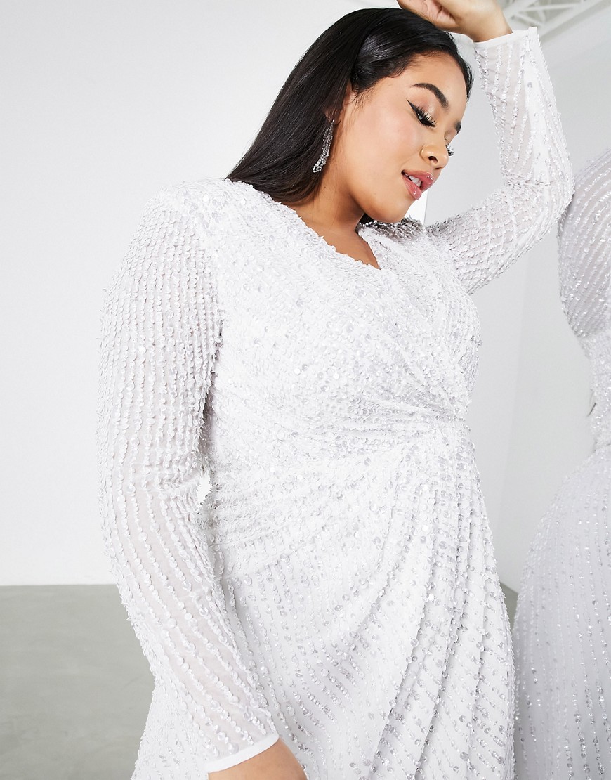 Kopertowa sukienka ślubna z cekinami plus size 46