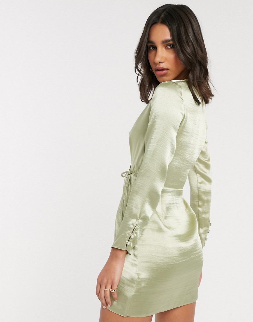 - Defekt zaciągnięty materiał przy lewym rękawie z tyłu sukienki, zdjęcie w galerii produktu