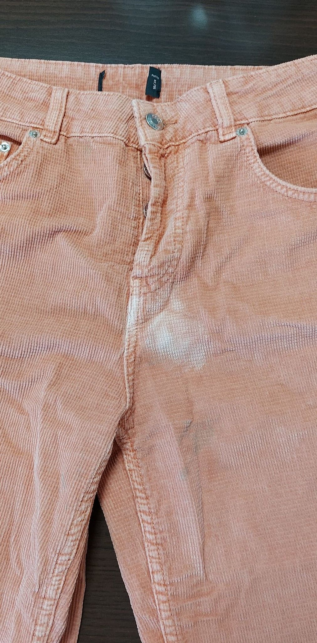 • Defekt : odbarwienie i przybrudzenie w okolicy kroku, zdjęcie w galerii produktu