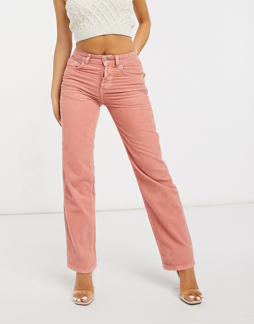 Koralowe spodnie damskie sztruks waflowym splot straight leg defekt W30 L28