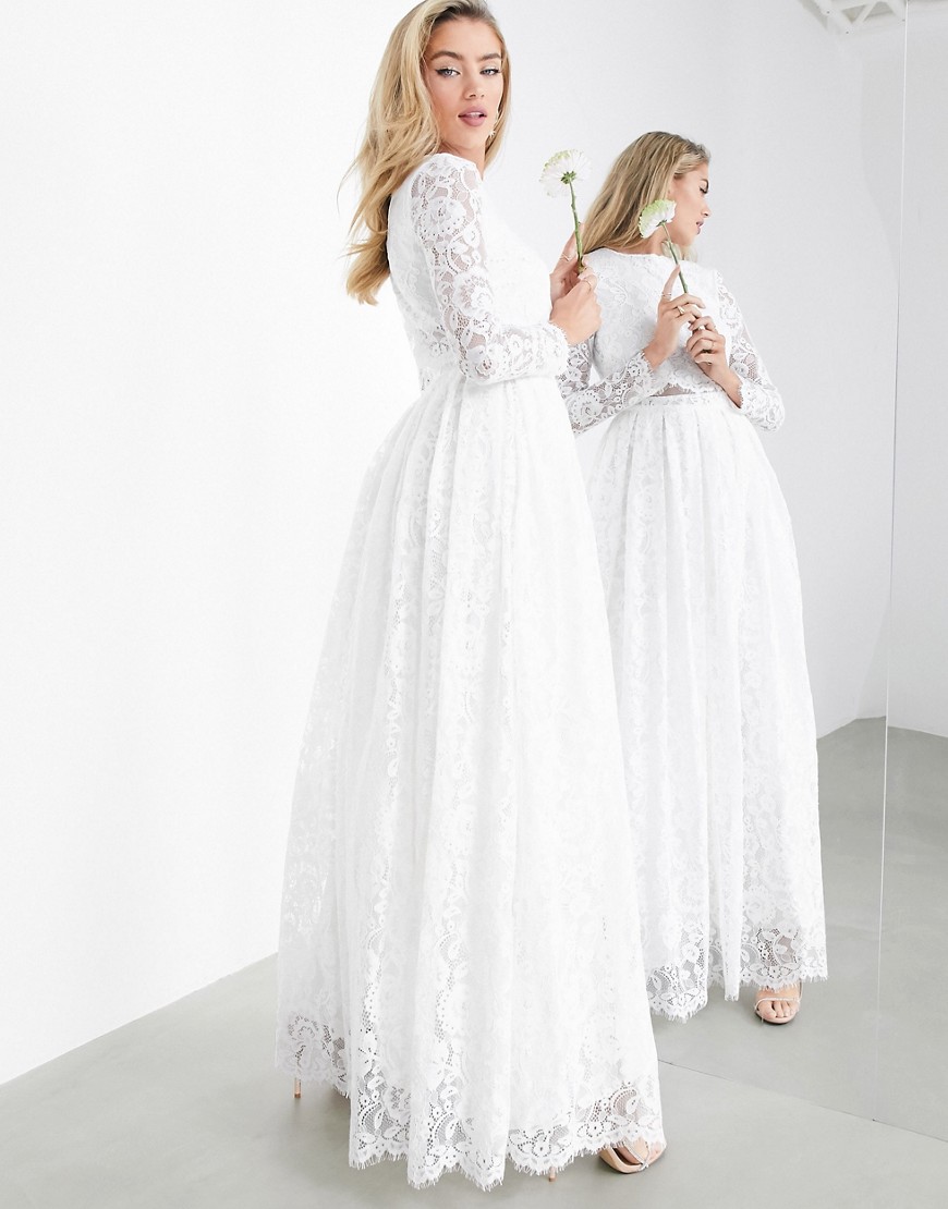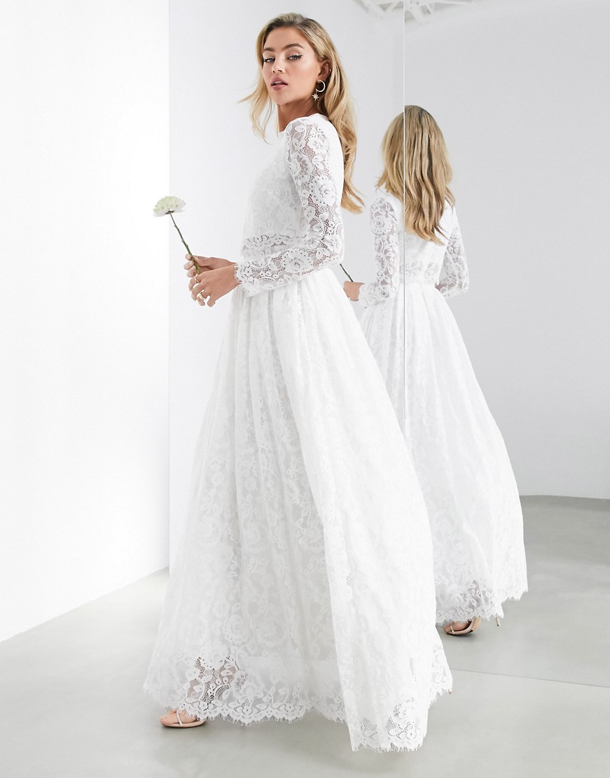 Koronkowa sukienka ślubna z krótkim topem i długim rękawem 34