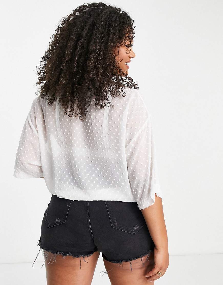 Koszula z wiązanym przodem z materiału dobby biała plus size 50