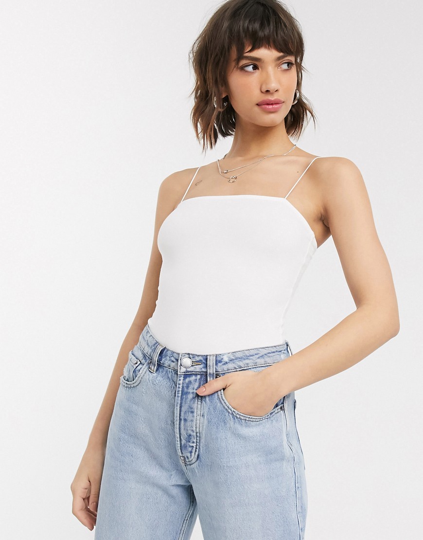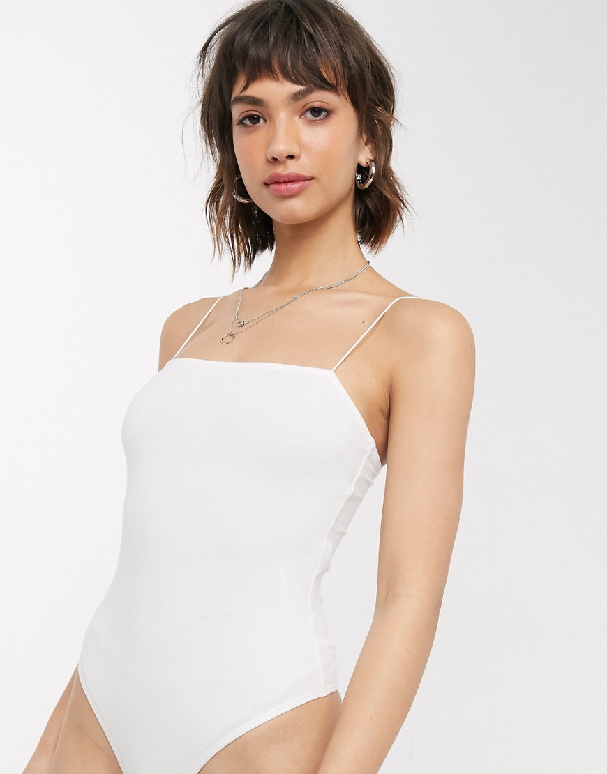 Kremowe body z kwadratowym dekoltem i wąskimi ramiączkami 34