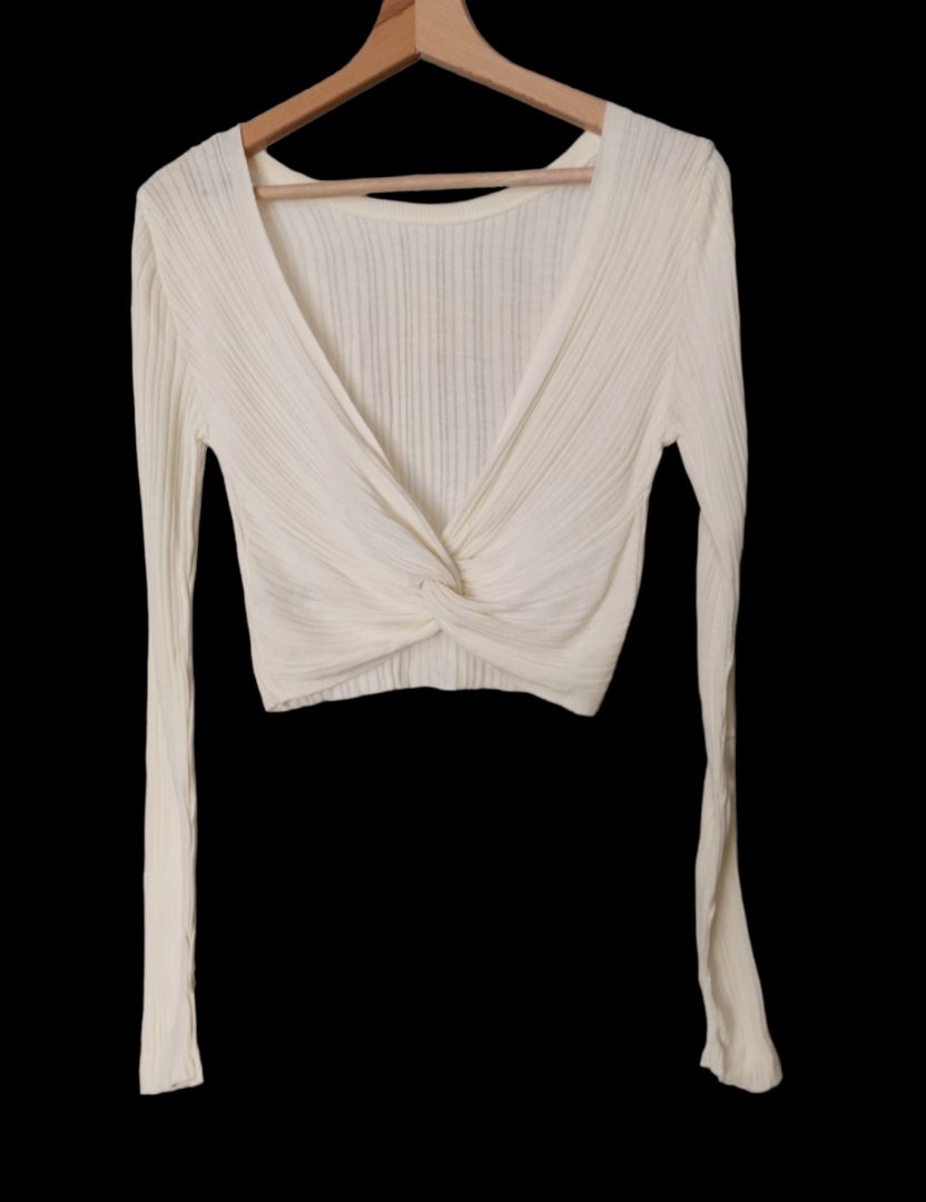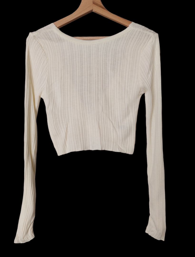 Kremowy dzianinowy top z odkrytymi plecami 38
