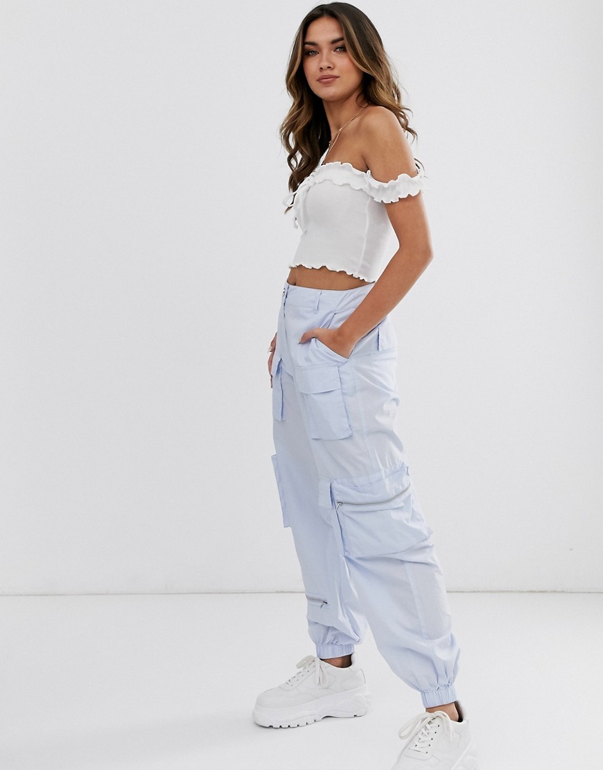 Kremowy żebrowany Top odkryte ramiona XXL 44