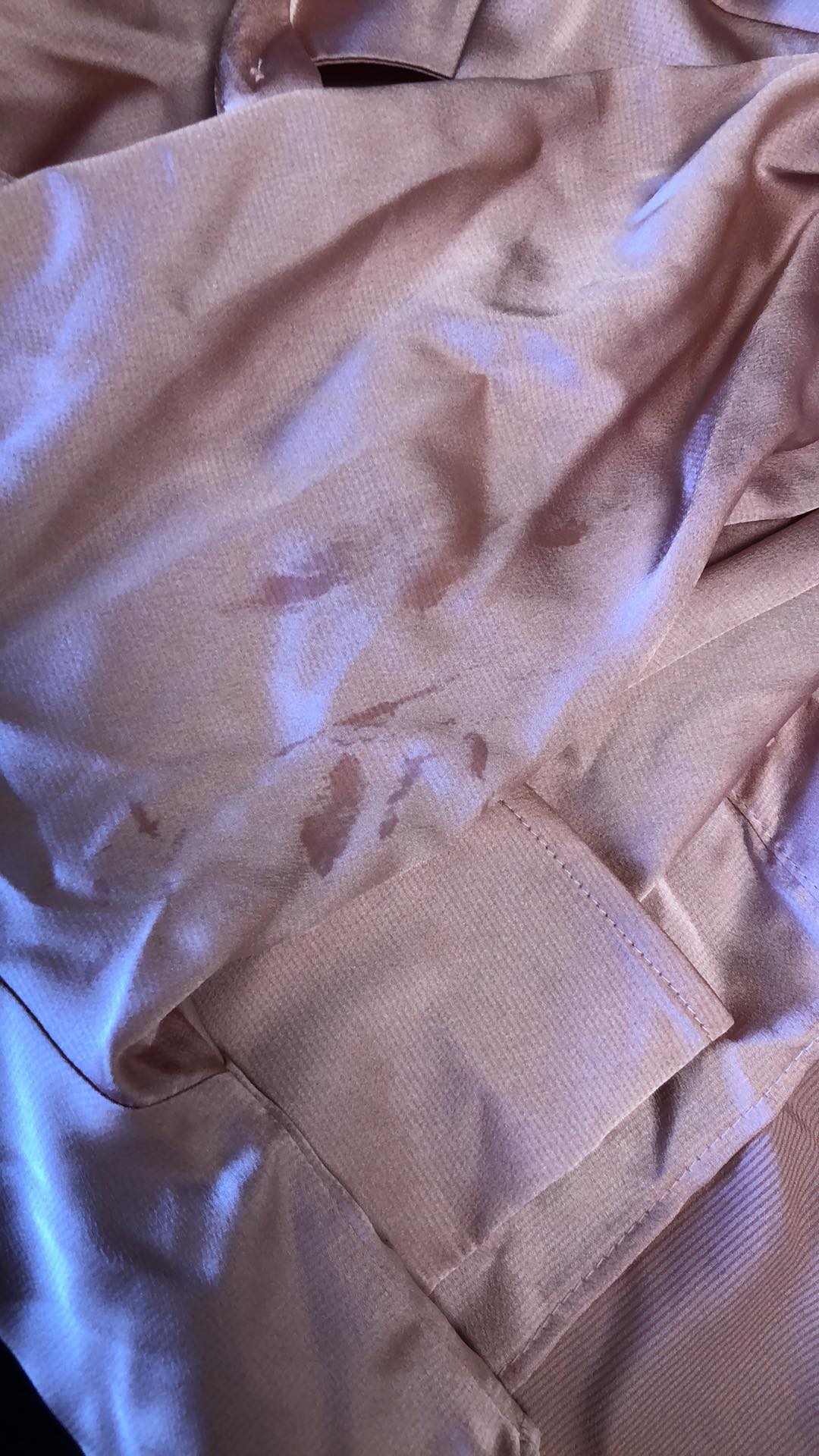 Krótka, satynowa koszula z rozszerzanymi mankietami, w kolorze terakoty defekt 38