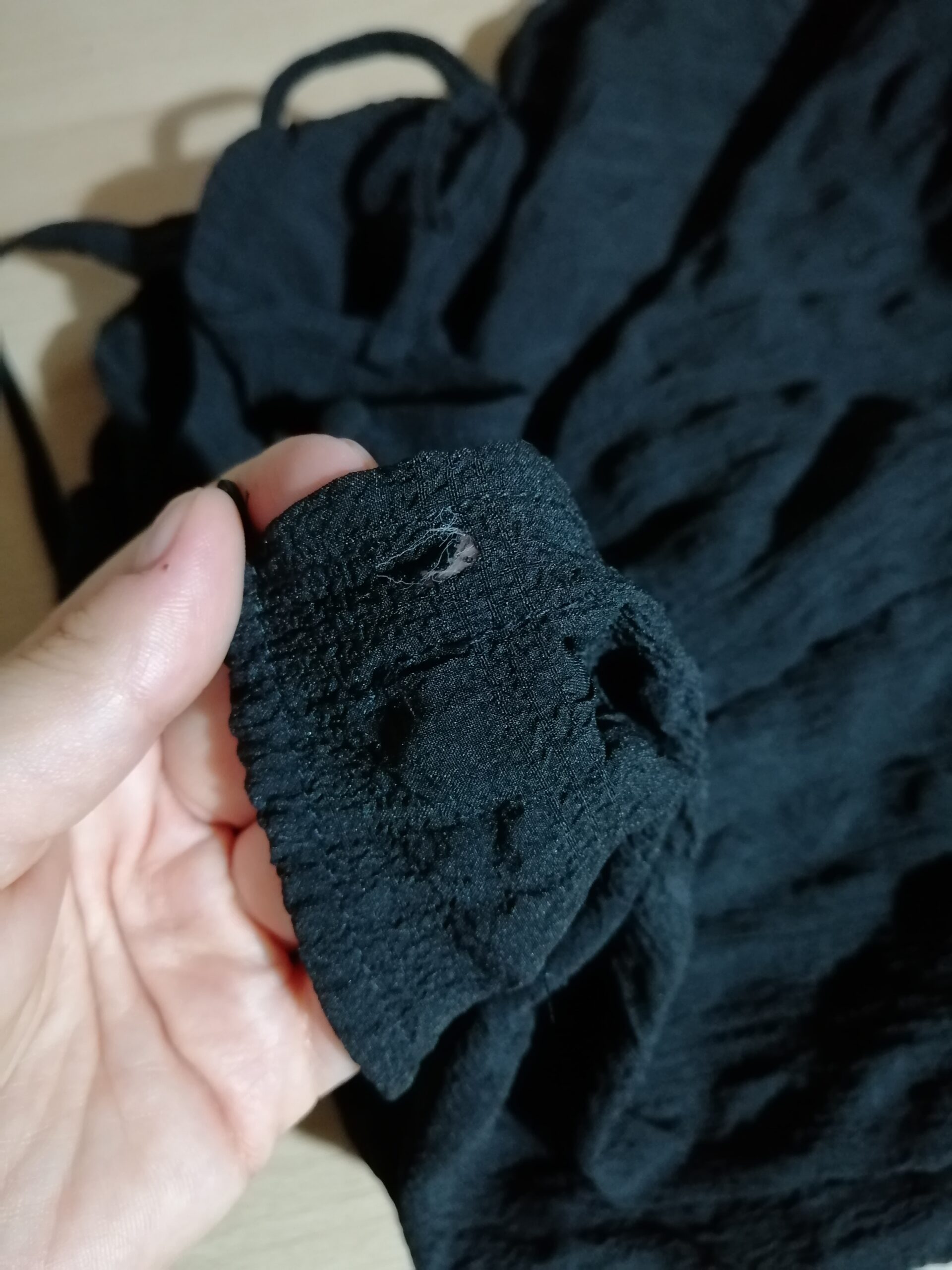 - defekt: dziurka przy zapięciu (zdjęcie)