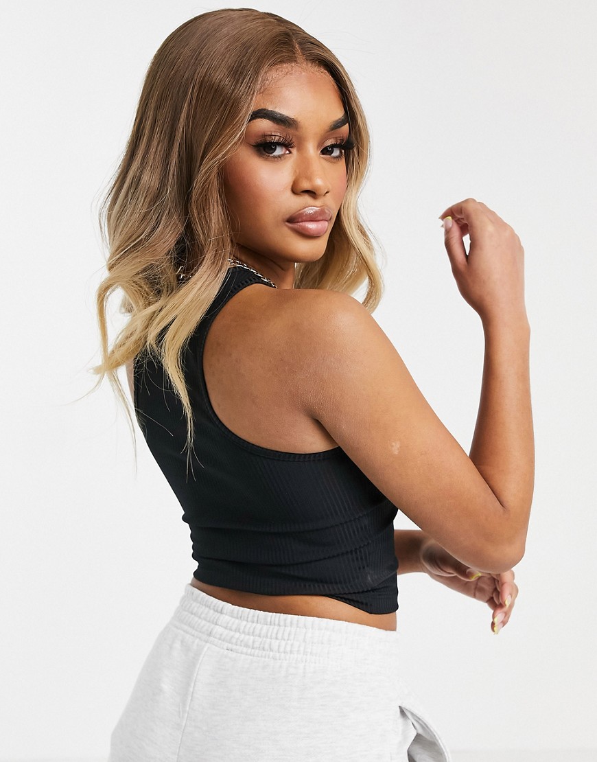 Krótki prążkowany top o fasonie bokserki czarny 40