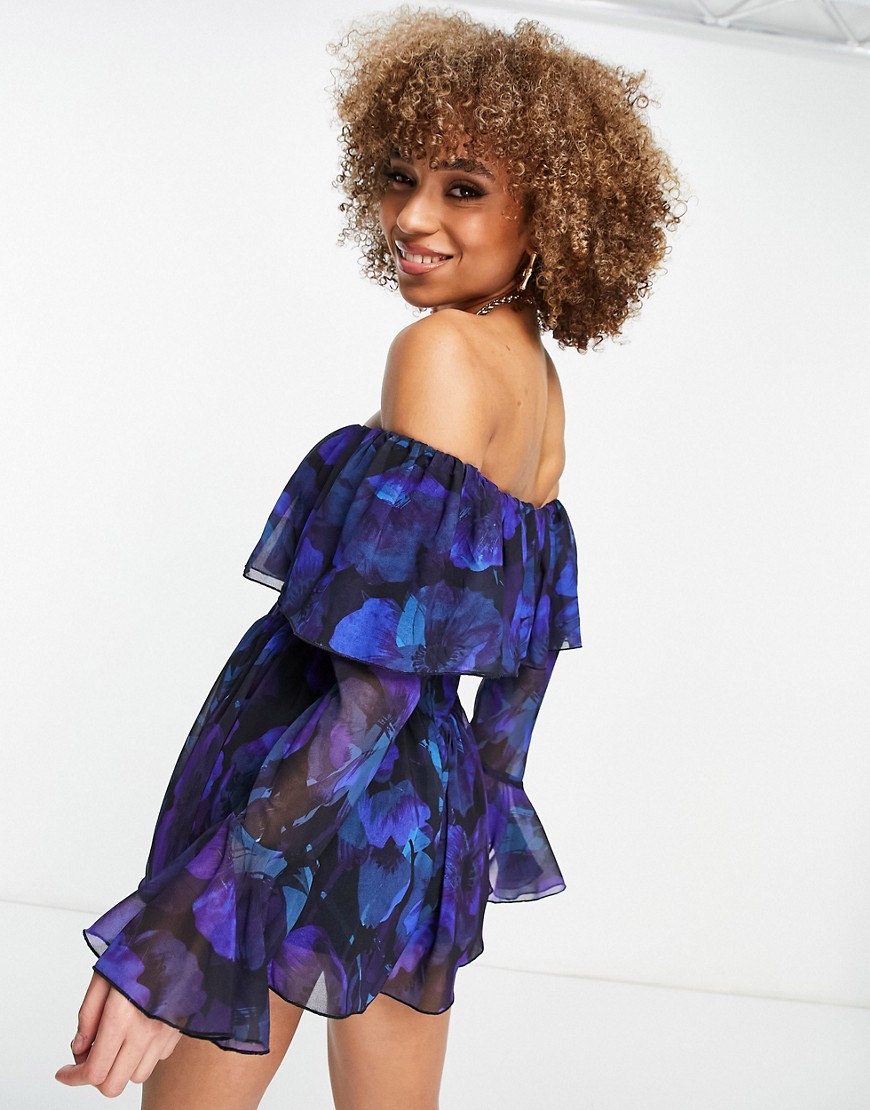 Krótki zwiewny kombinezon z szyfonu w niebieski kwiatowy wzór defekt 44