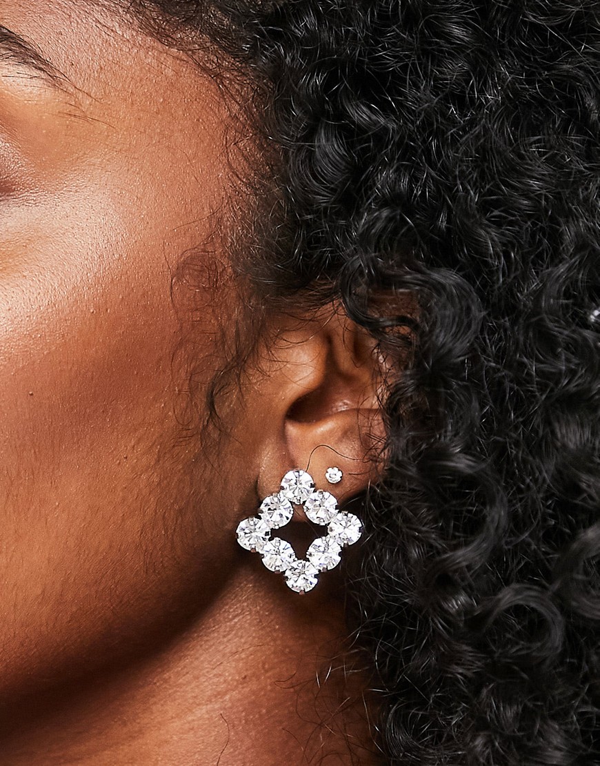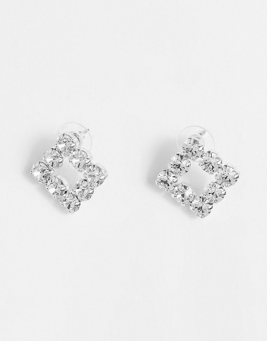 Kwadratowe kolczyki z kryształkami w kolorze srebra