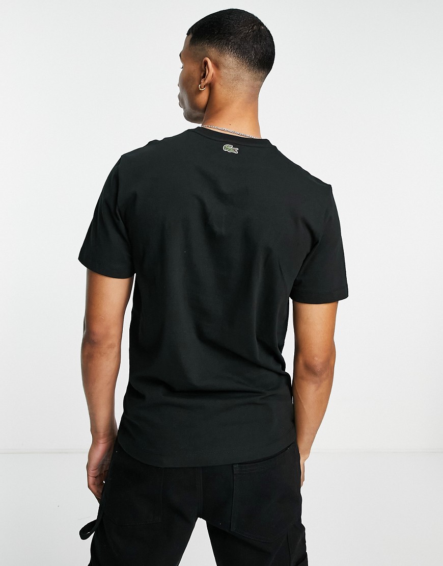Lacoste czarny t-shirt z logo z łukami S