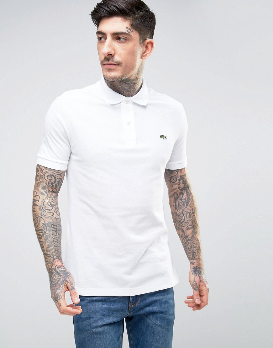 Lacoste dopasowany biały t-shirt kołnierzyk L