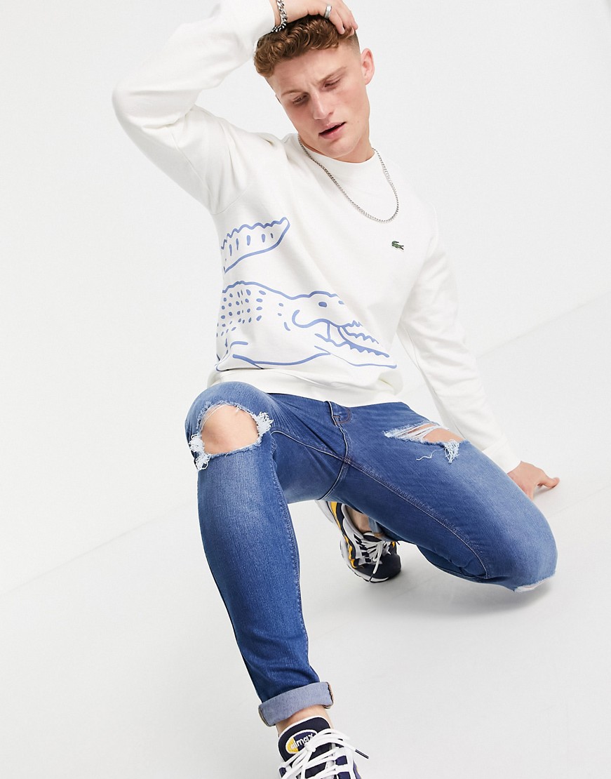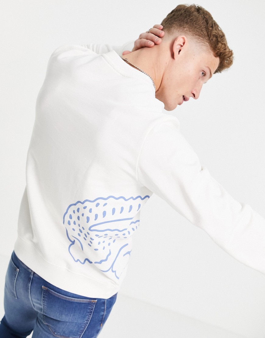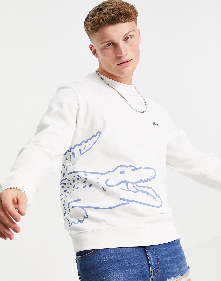 Lacoste kremowa bluza z okrągłym dekoltem i nadrukiem krokodyla defekt L