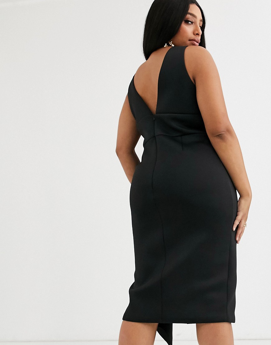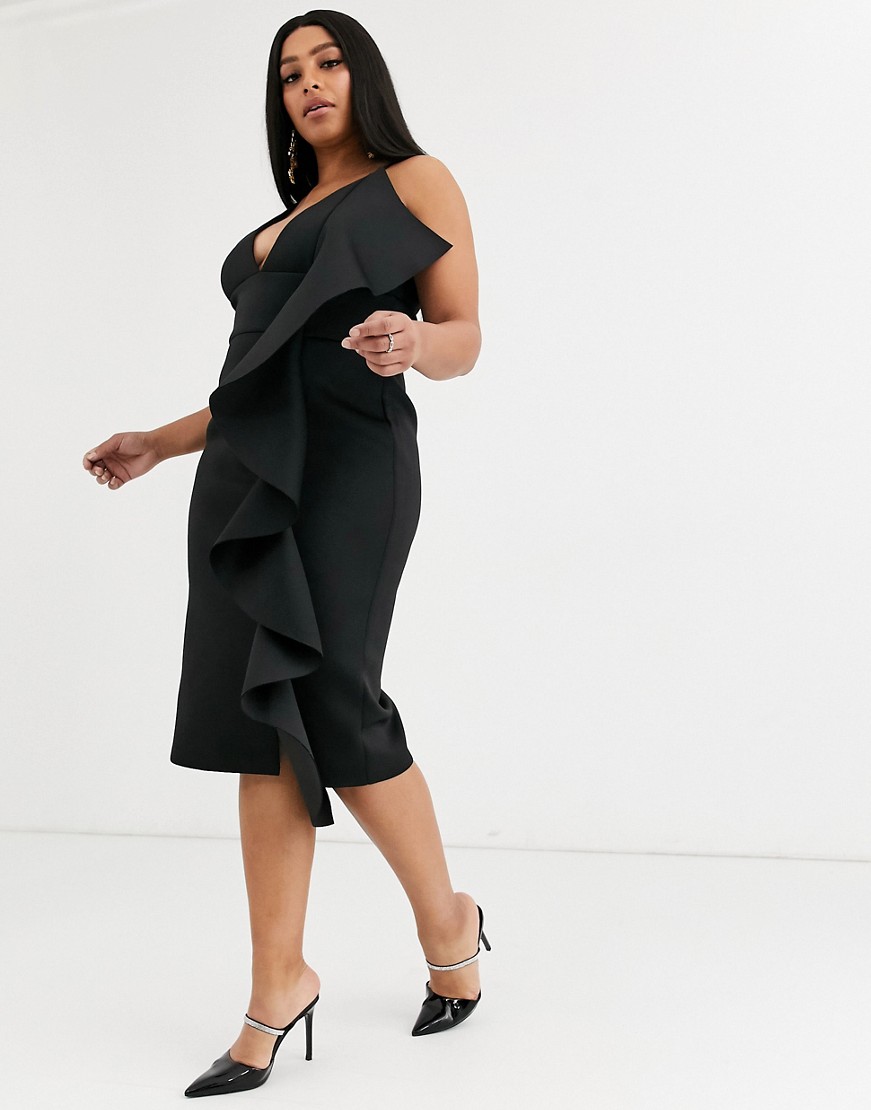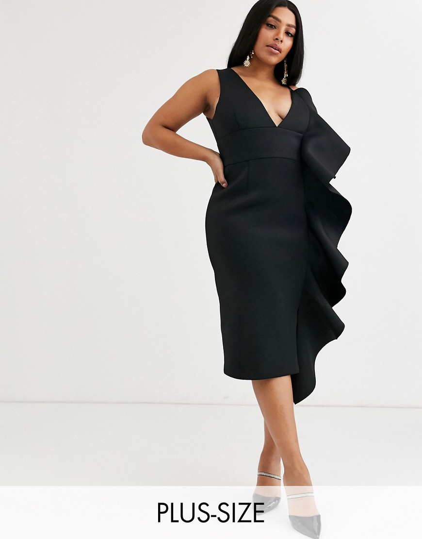 Lavish Alice Plus czarna sukienka na ramiączkach z falbaną scuba 52