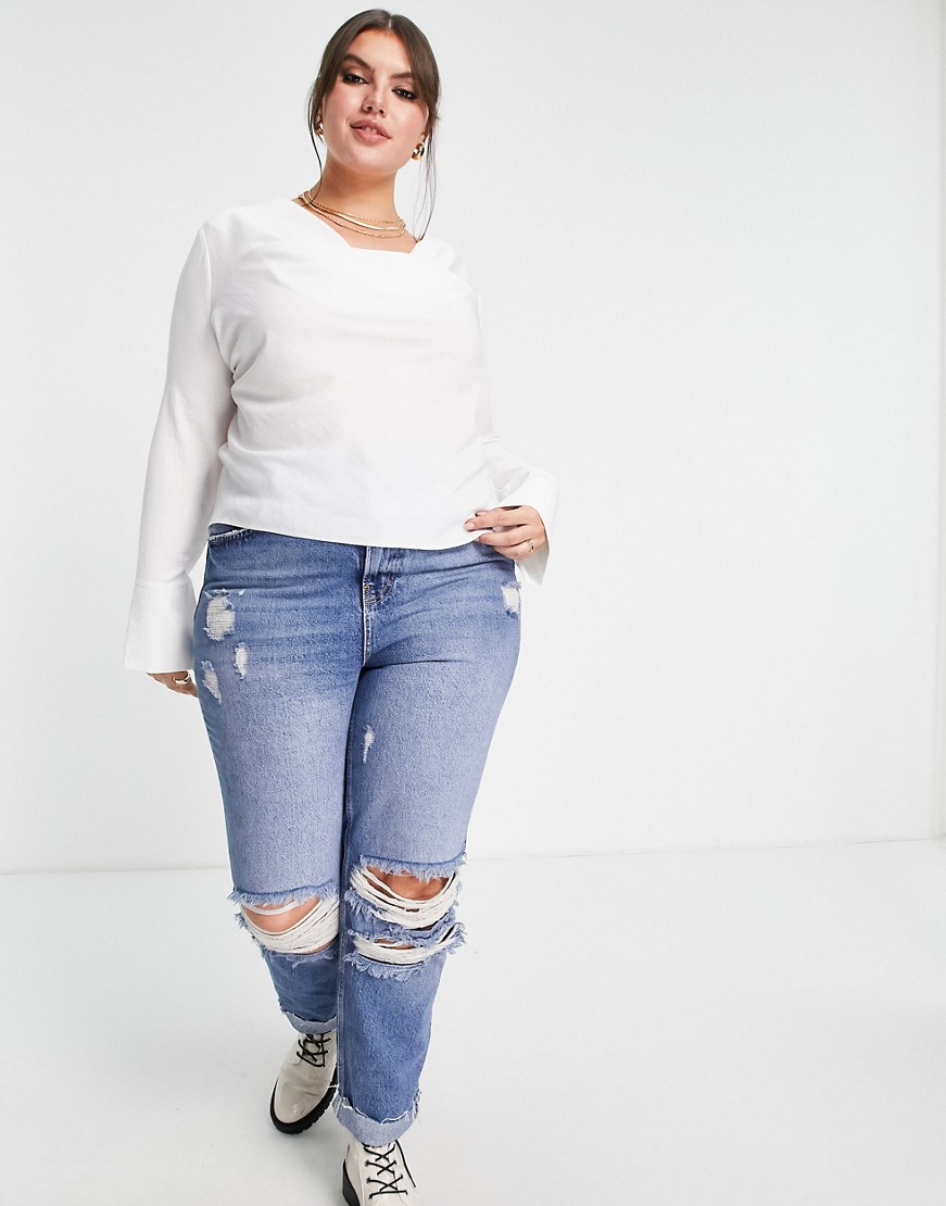lBuzka z długim rękawem i drapowanym dekoltem ivory defekt 42